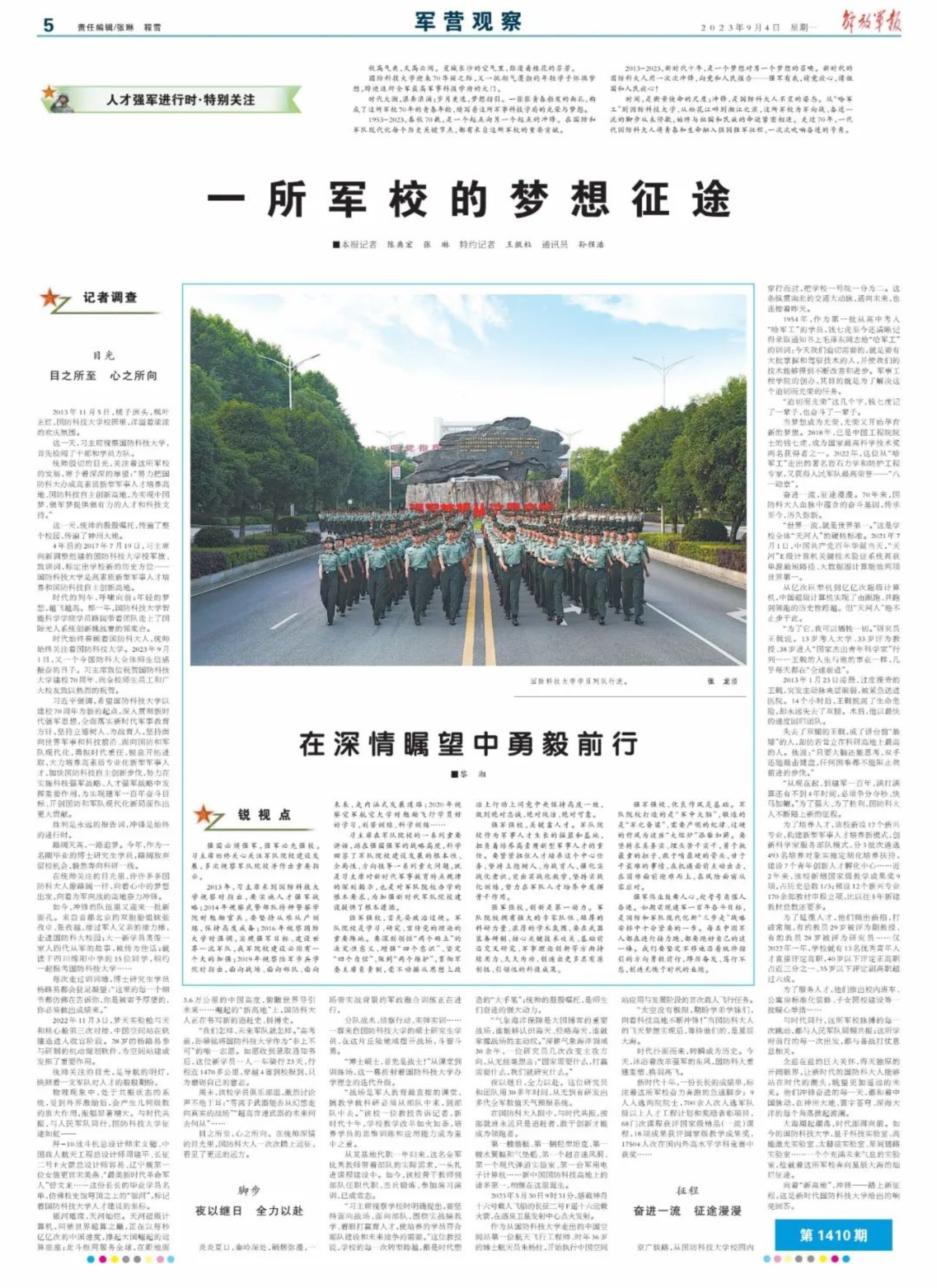 统帅殷切的目光,关注着这所军校的发展,寄予着深深的厚望:“努力把国防米兰办成高素质新型军事人才培养高地、国防科技自主创新高地,为实现中国梦、强军梦提供强有力的人才和科技支持。”