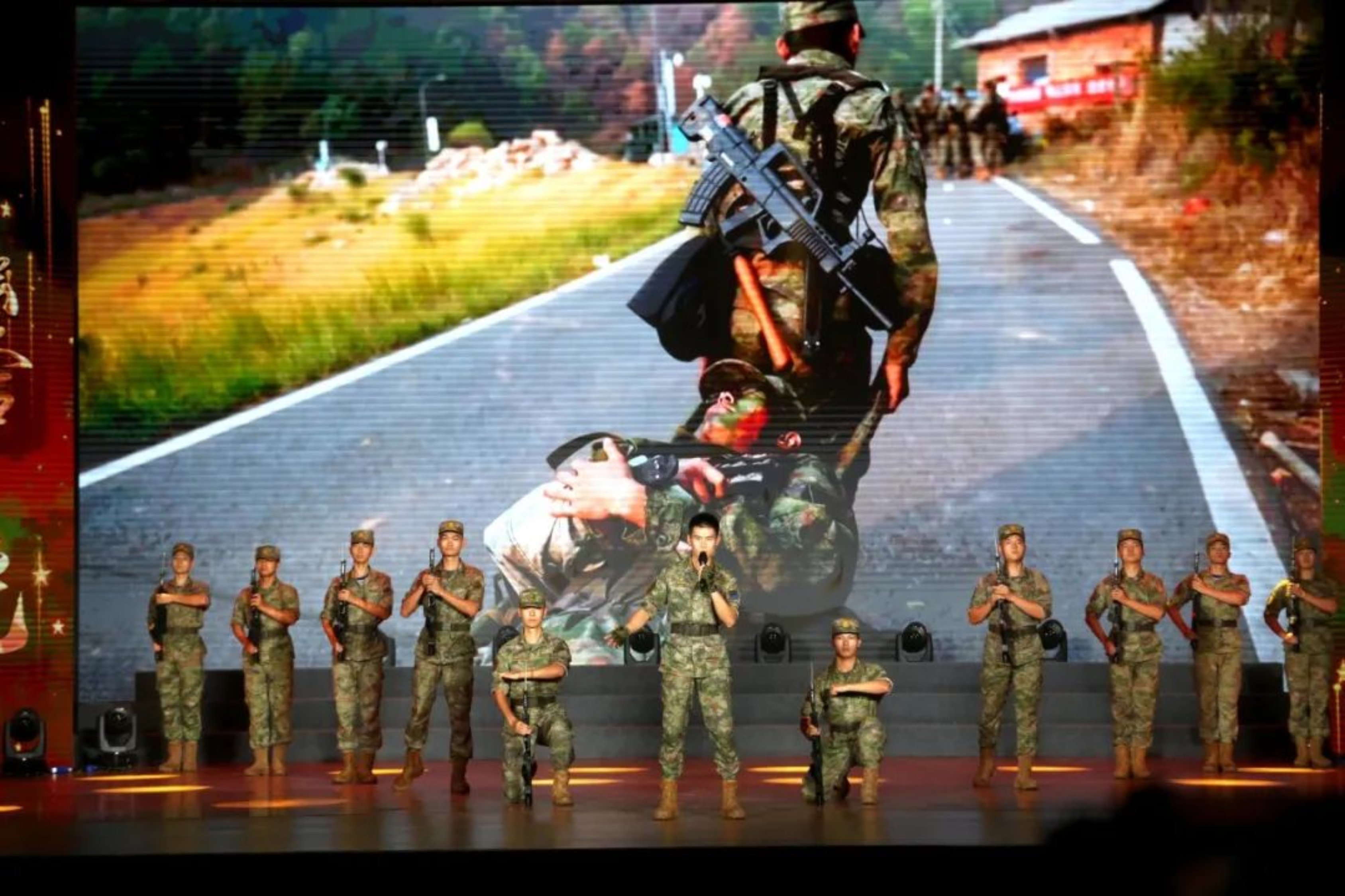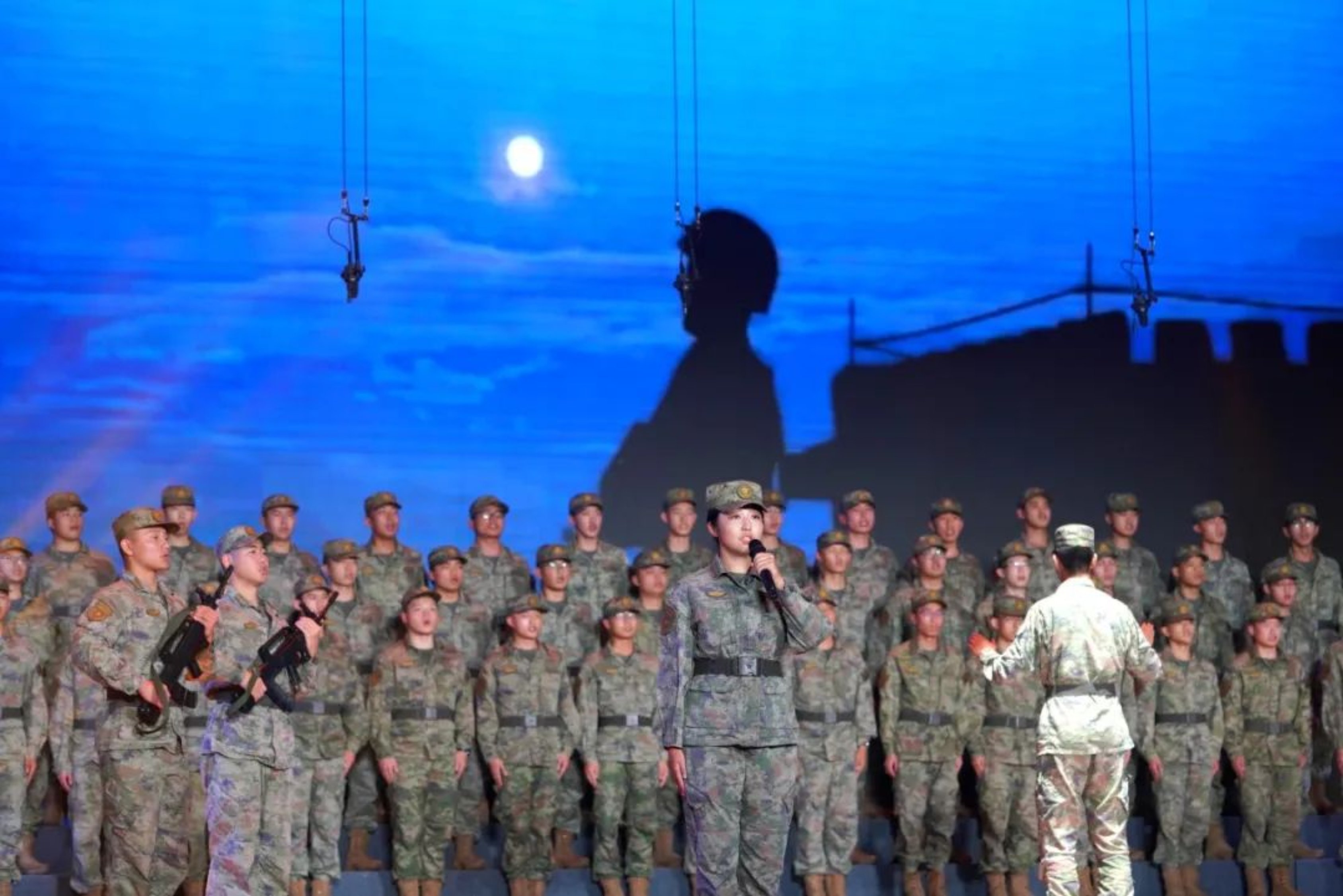 《把青春压进枪膛》以激昂的歌声生动诠释了“前沿人”对使命的忠诚与对胜利的渴望。舞者们每一个刚劲的动作、坚毅的表情,仿佛在诉说着一代代“前沿人”将青春献给国防的坚定信念。
