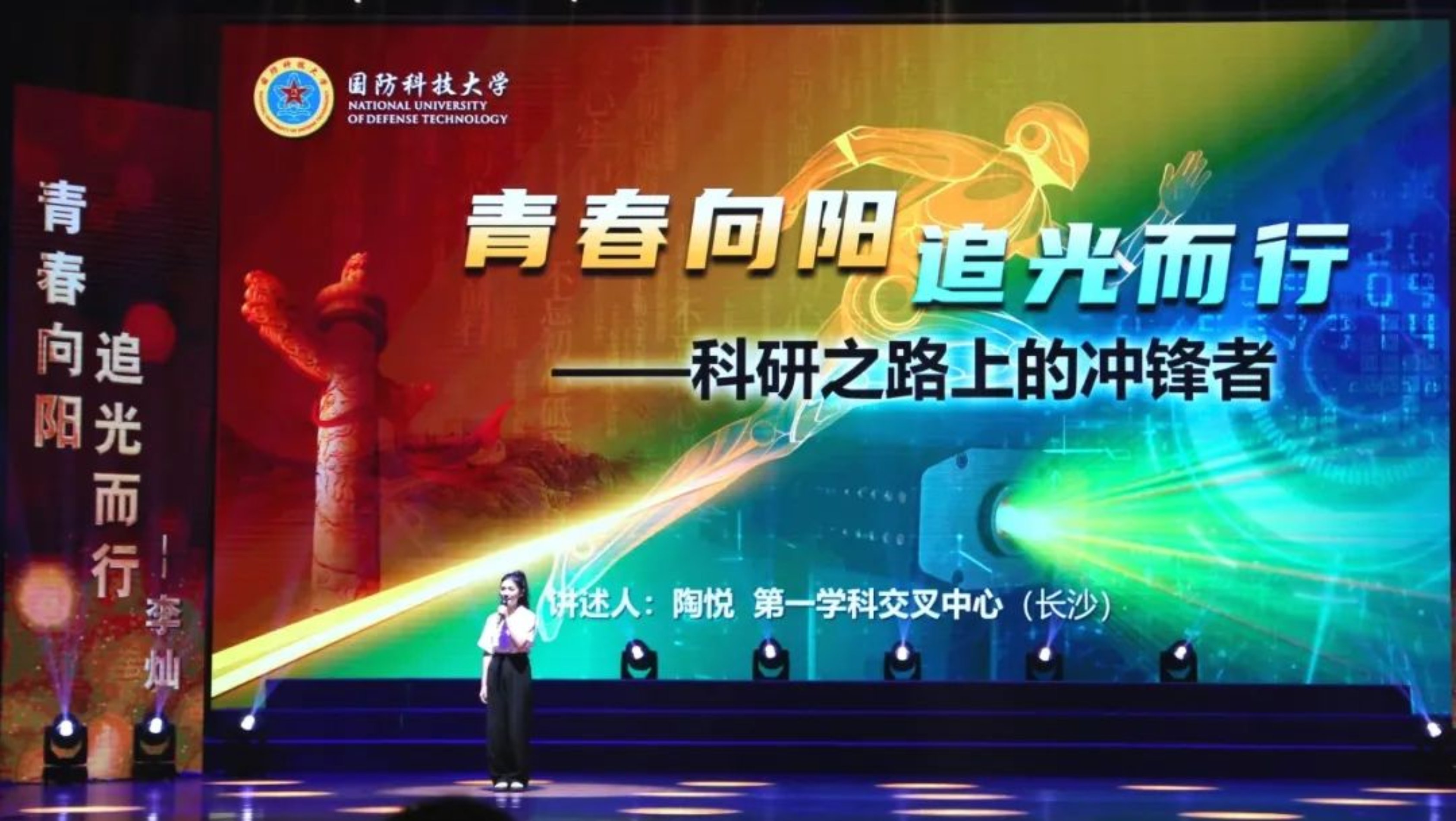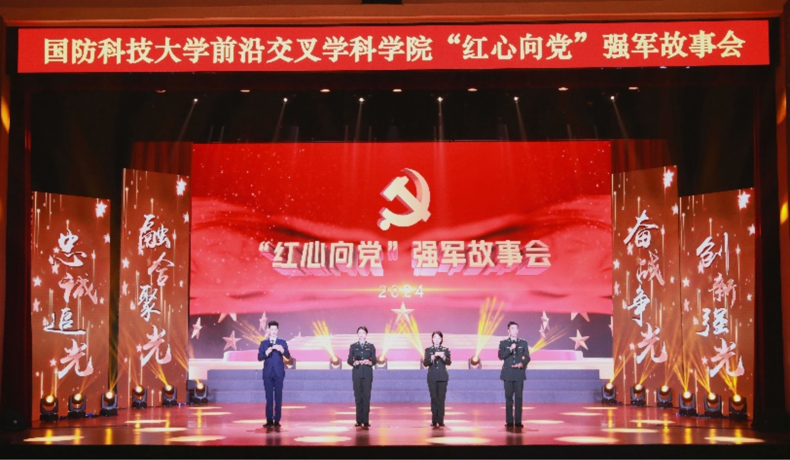 “强军路上英雄多,大隐于世谱战歌,要问他们都忙啥?嘘,不能说!”在长沙校区四号院大礼堂内,前沿交叉学科学院官兵正在讲述科研一线人员干惊天动地事、做隐姓埋名人的峥嵘岁月。在新中国成立75周年之际,该院举办“红心向党”强军故事会,从忠诚追光、创新强光、融合聚光、奋战争光4个篇章8个故事逐一展开,通过单人讲述、群口故事、情景剧、歌舞等形式,为观众带来一堂融教育性情景性的生动思政课。
