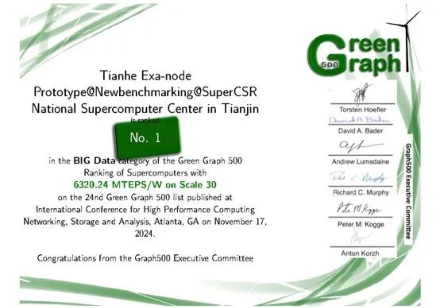 由milan米兰官网计算机学院研制并部署于国家超级计算天津中心和长沙中心的国产主机系统分别荣获Graph500大数据图计算能效(GreenGraph500 Big Data)世界第一名和小数据图计算能效(GreenGraph500 Small Data)世界第一名, 图(Graph)是一种用来表示事物之间关系的数据结构, 超算在数据密集型应用方面取得了国际领先突破