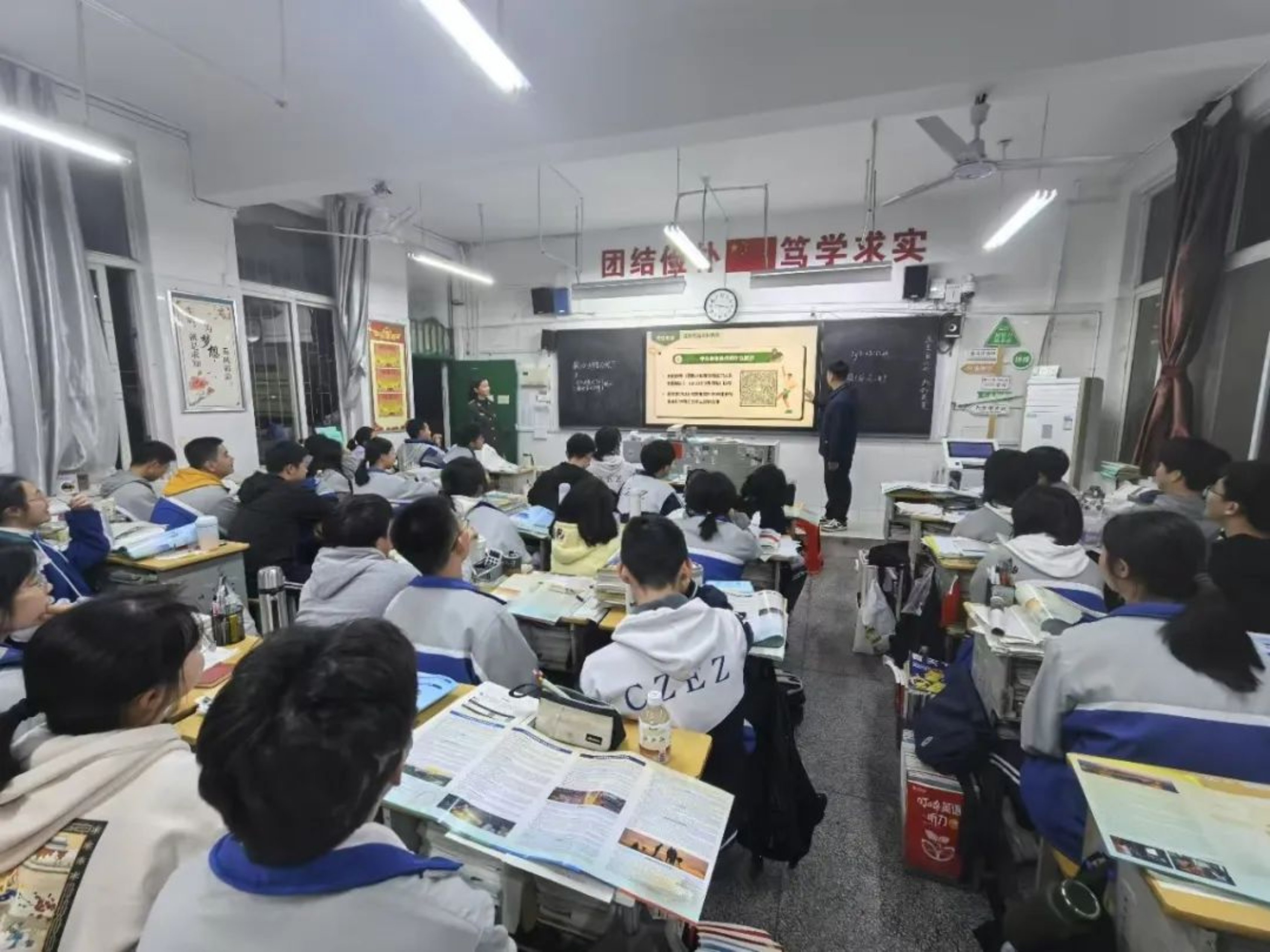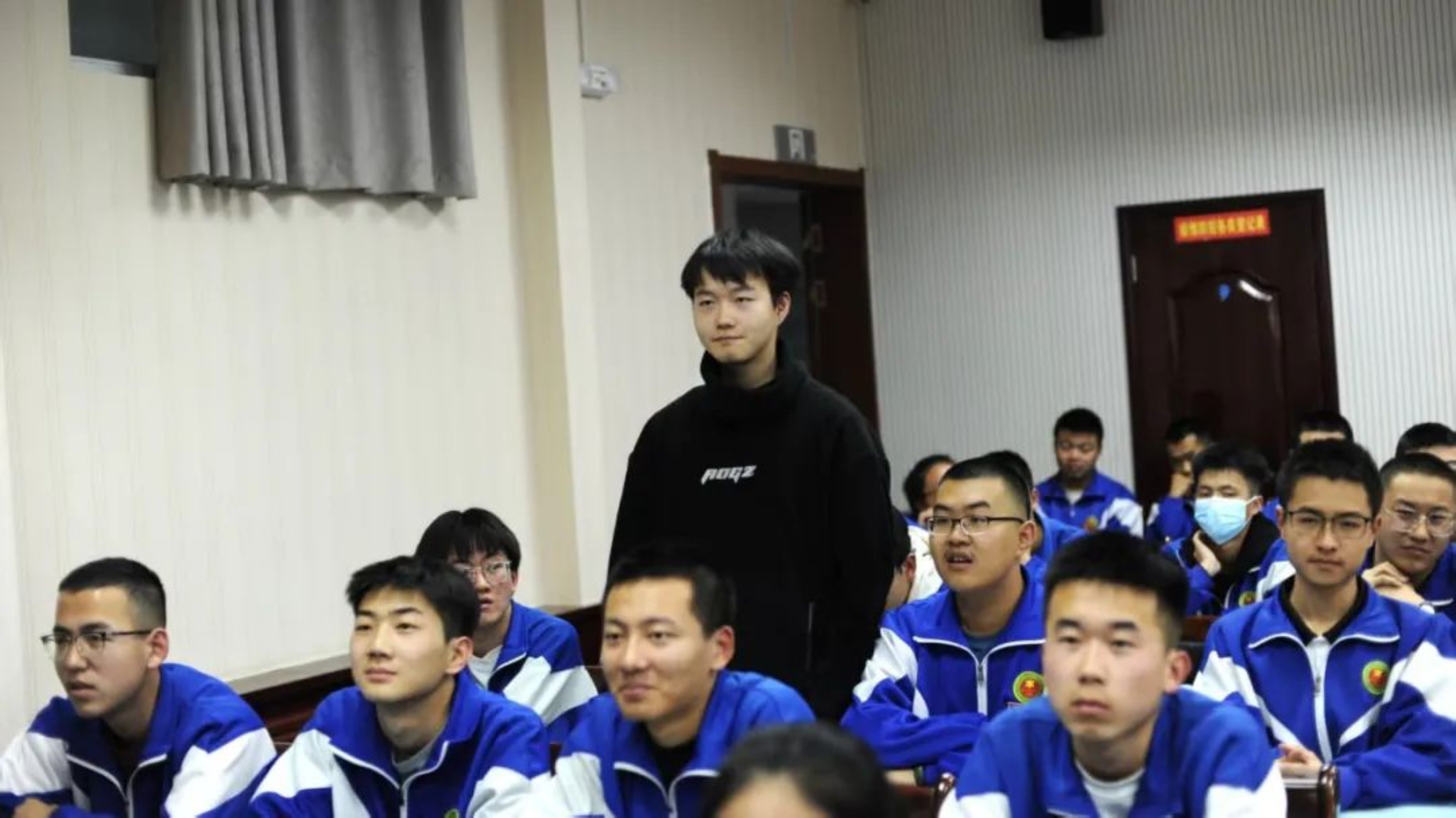 宣讲团成员在报告厅播放《向新为战》宣传片,引得学弟学妹们掌声阵阵。随后,宣讲团成员分别进班宣讲,围绕招生政策和注意事项展开介绍,为学弟学妹们答疑解惑,并与众多有志于投身国防事业的学子建立线上联系方式。