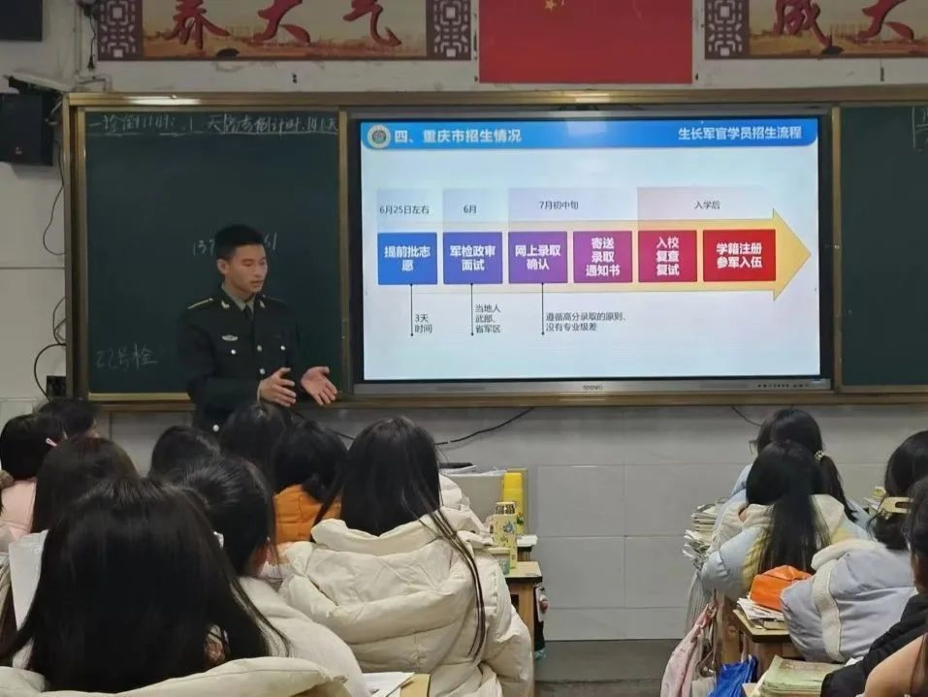 重回母校宣讲,感慨万千。我详细介绍军校生活,从严苛训练到丰富活动,耐心解答报考疑问。这次宣讲,不仅点燃了同学们心中的军校梦,也让我更加坚定了为国防事业矢志奋斗的信念。