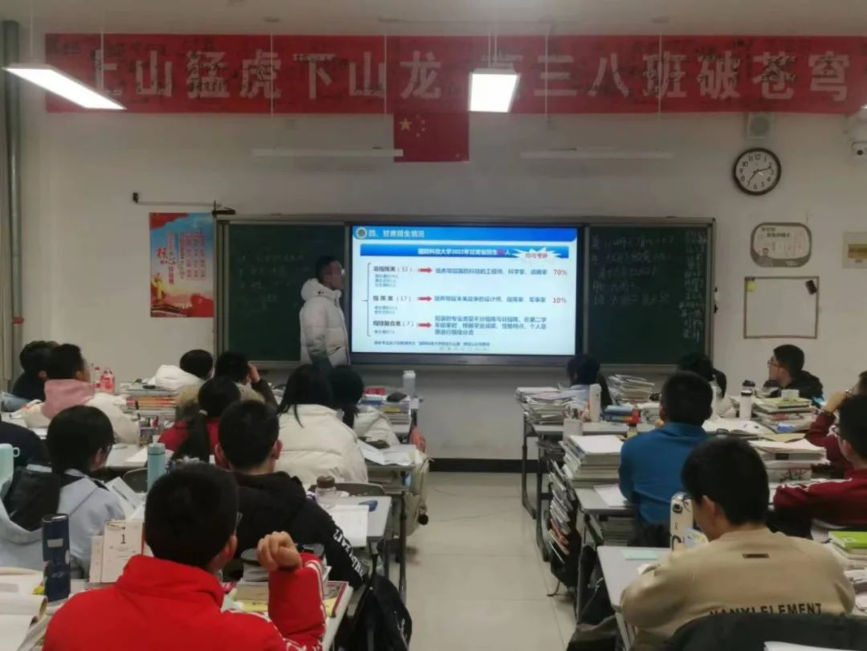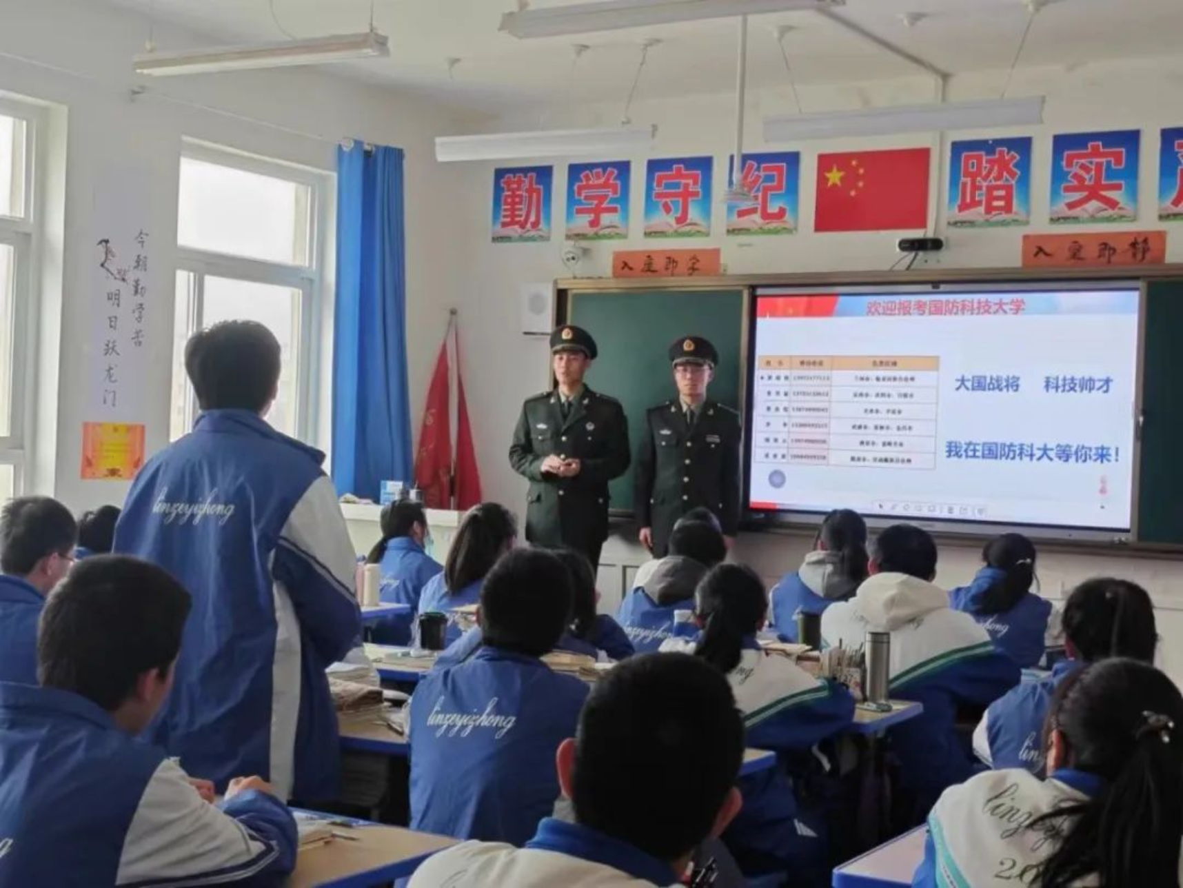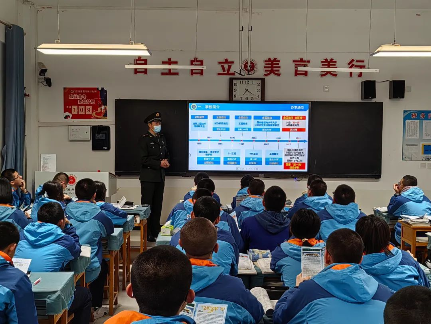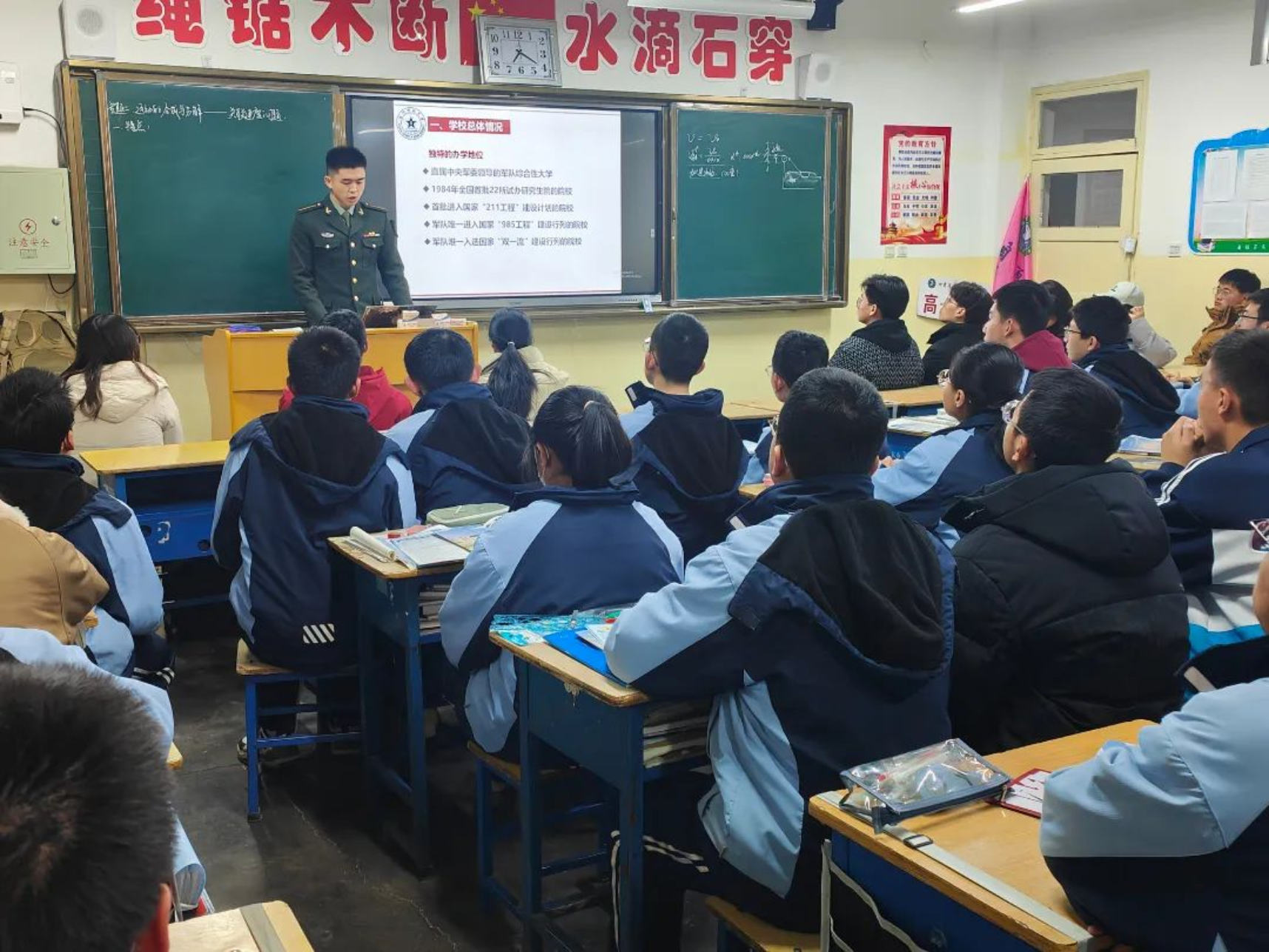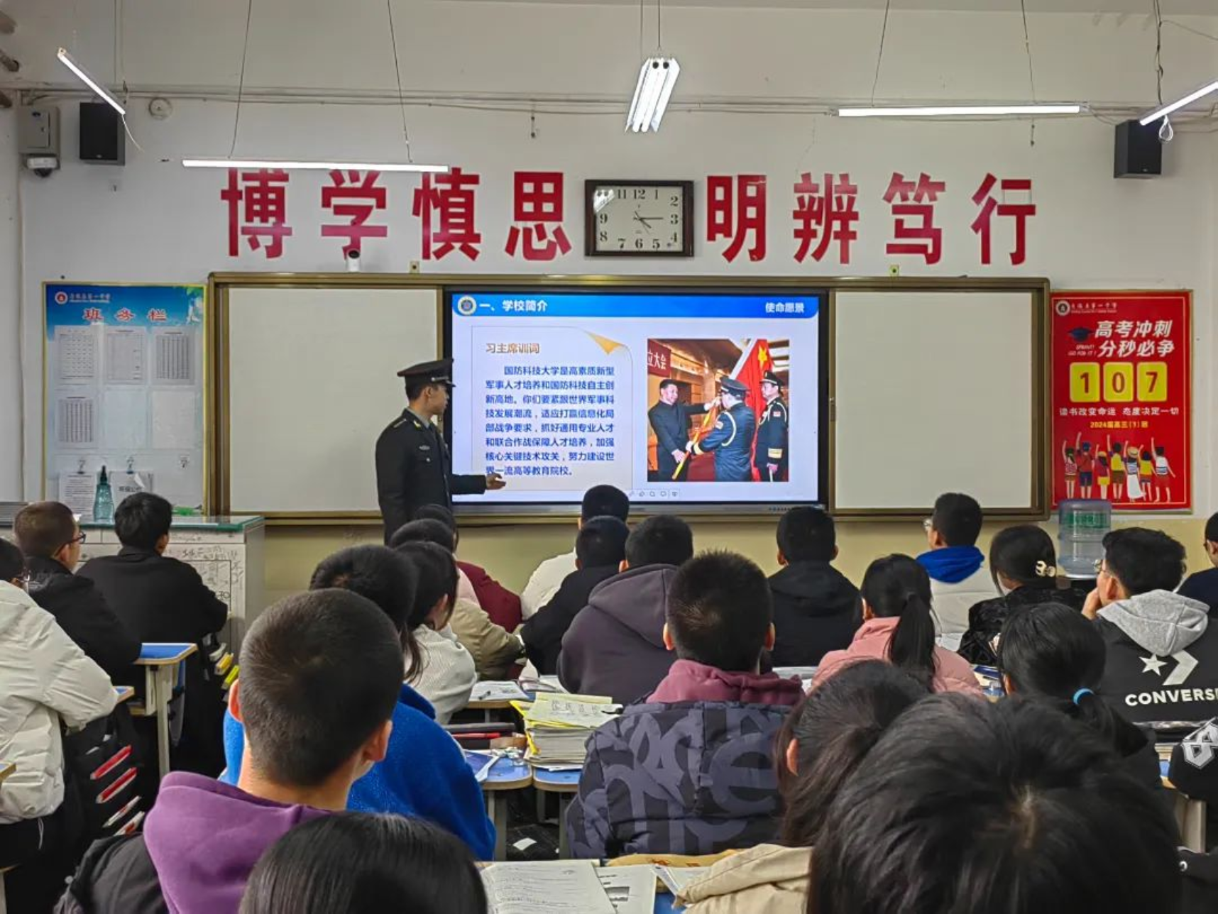 1月30日,学校生长军官本科学员李翔宇、姬嘉铜、贺晨阳、石兆羲组成的宣讲团回到母校八一中学为高二高三的同学们开展宣讲,旨在传播红色火种,让同学们更好的了解milan米兰官网。宣讲团分为2组对不同班级展开宣讲,将自身经历融入宣讲内容,针对性开展答疑。此次宣讲为有信念、有志于投身强军事业的学弟学妹们提供了有价值的报考参考。