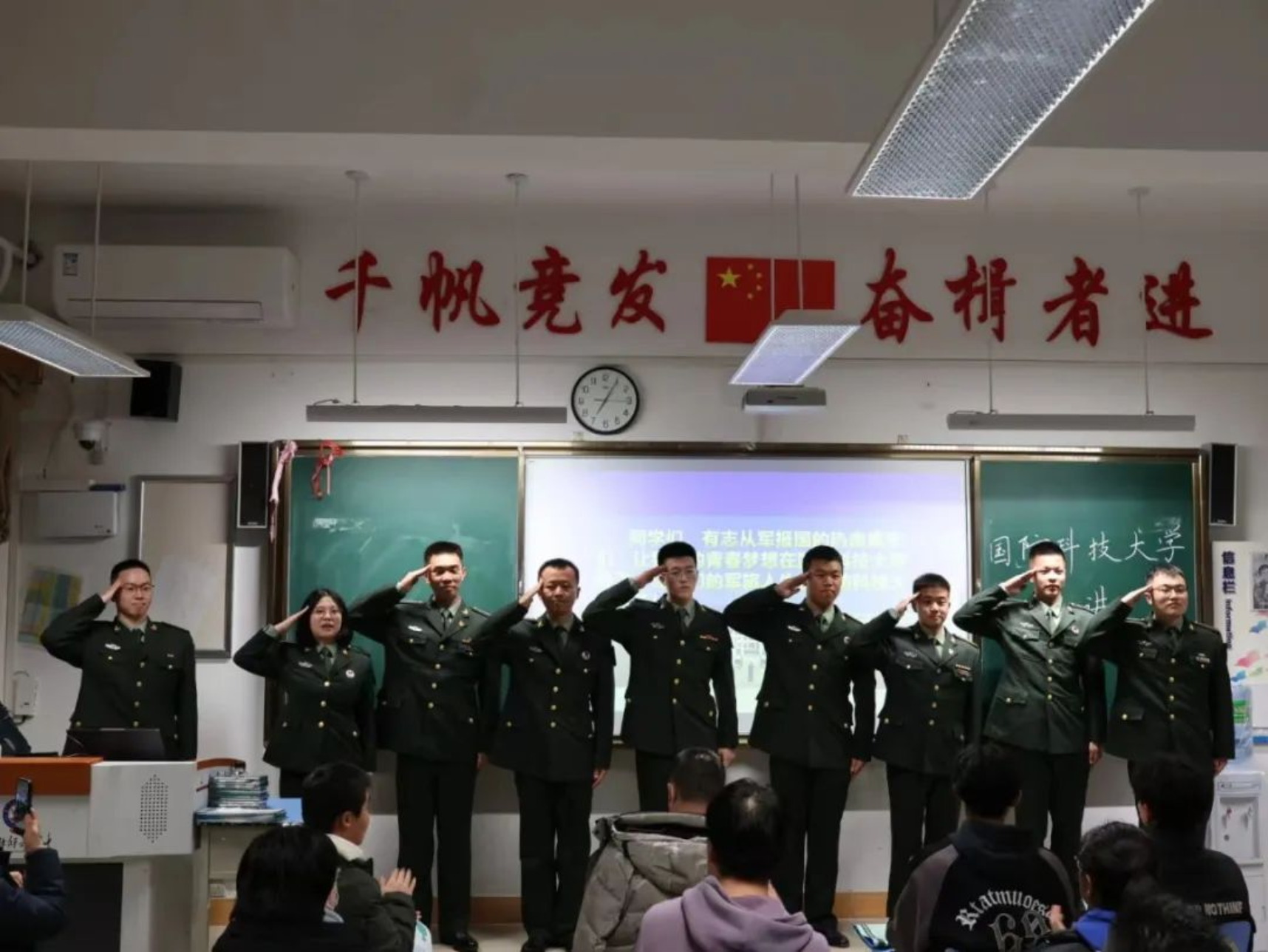 回顾宣讲过程,从不知所措到集思广益,从无经验的小白到侃侃而谈,这其中的努力让我为之动容。我深刻认识到军校不仅仅是培养科学文化和军事技能的地方,更是塑造人格、砥砺品质的殿堂。这次宣讲更是锻炼了我随机应变和人际交往的能力,问题永远是未知数,只有前期充分的学习与了解,才能有的放矢。当身着军装在校园里经过时,带给我的不仅仅是百分之百的回头率,更是身为一名军人的职责与使命。在军校的磨练,我变得更加坚韧、勇敢和自信,在未来的日子里,我将始终牢记自己的职责与担当,用实际行动诠释军人的荣誉与誓言!