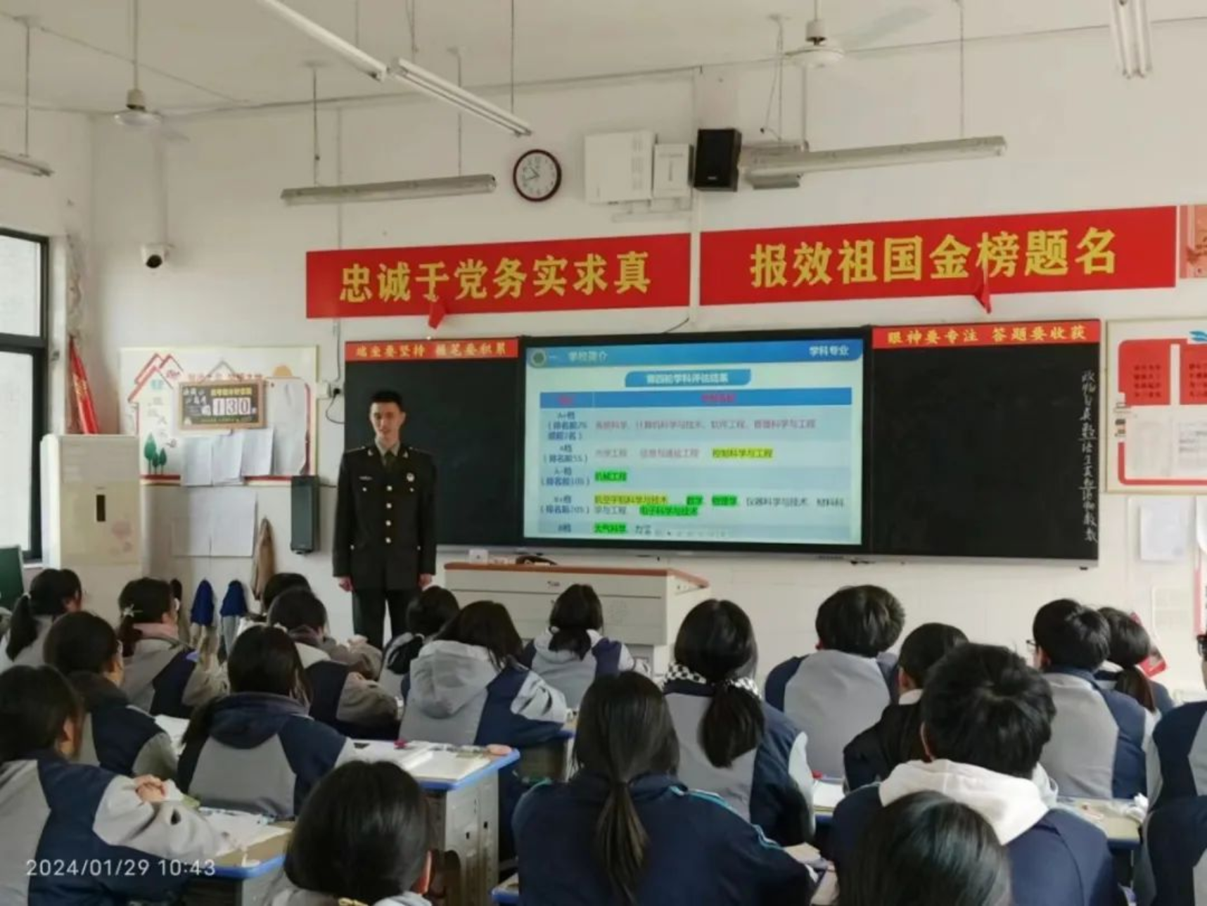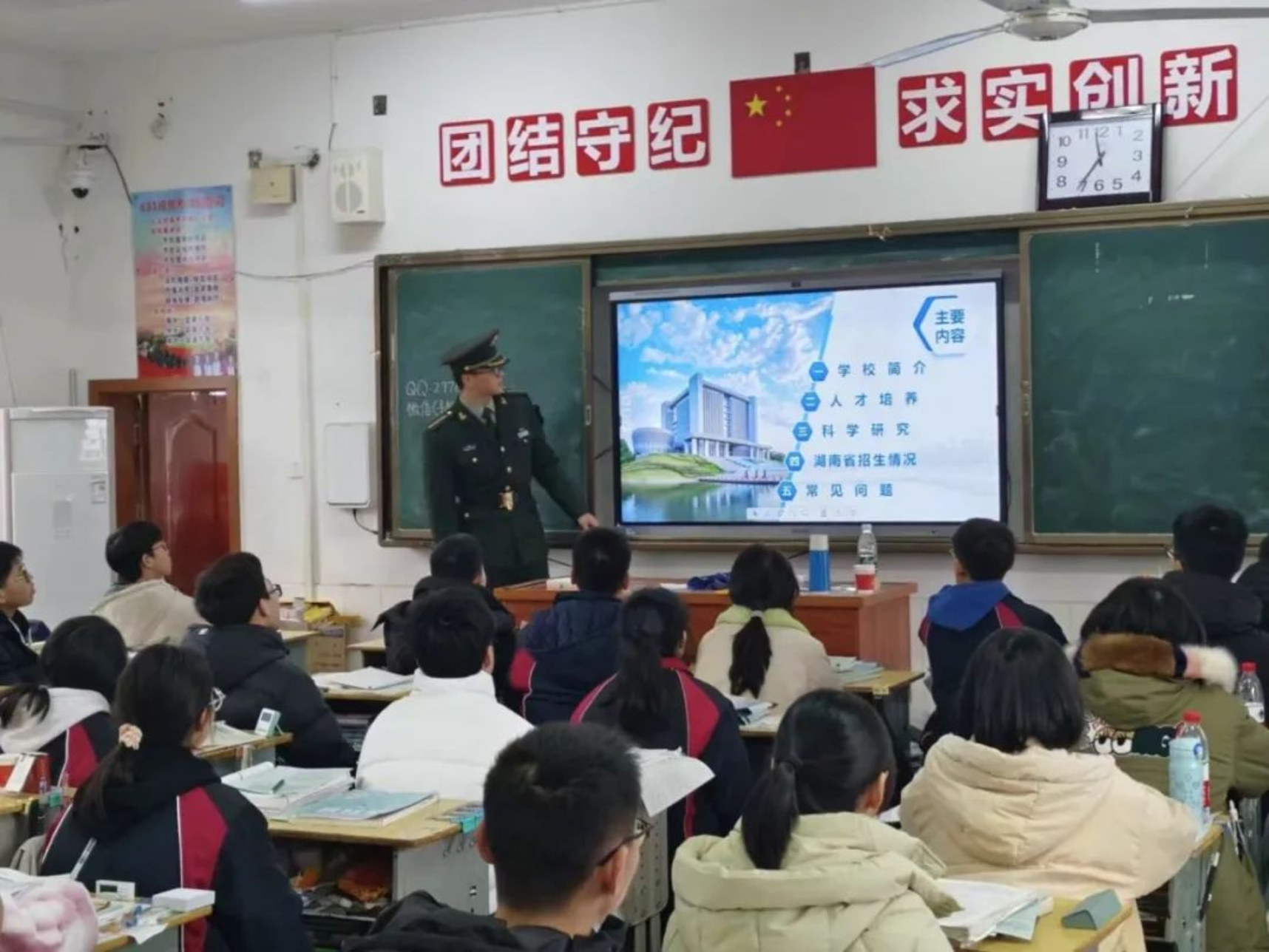 1月31日,学校生长军官本科学员苏伟航一行来到宁乡市实验中学励志部开展了一场精彩纷呈的宣讲活动,宣讲覆盖实验中学重点班。宣讲团首先从国防米兰的建校历史、办学理念和发展现状等方面进行了详细介绍,重点解读在湖南省的招生政策,使同学们对米兰有了更加全面深入的了解,为有意报考的同学们提供了指导。宣讲结束后,同学们就高考报名中存在的困惑与宣讲团进行了面对面交流,宣讲团耐心解答,并鼓励同学们潜心学习的同时提高身体素质。