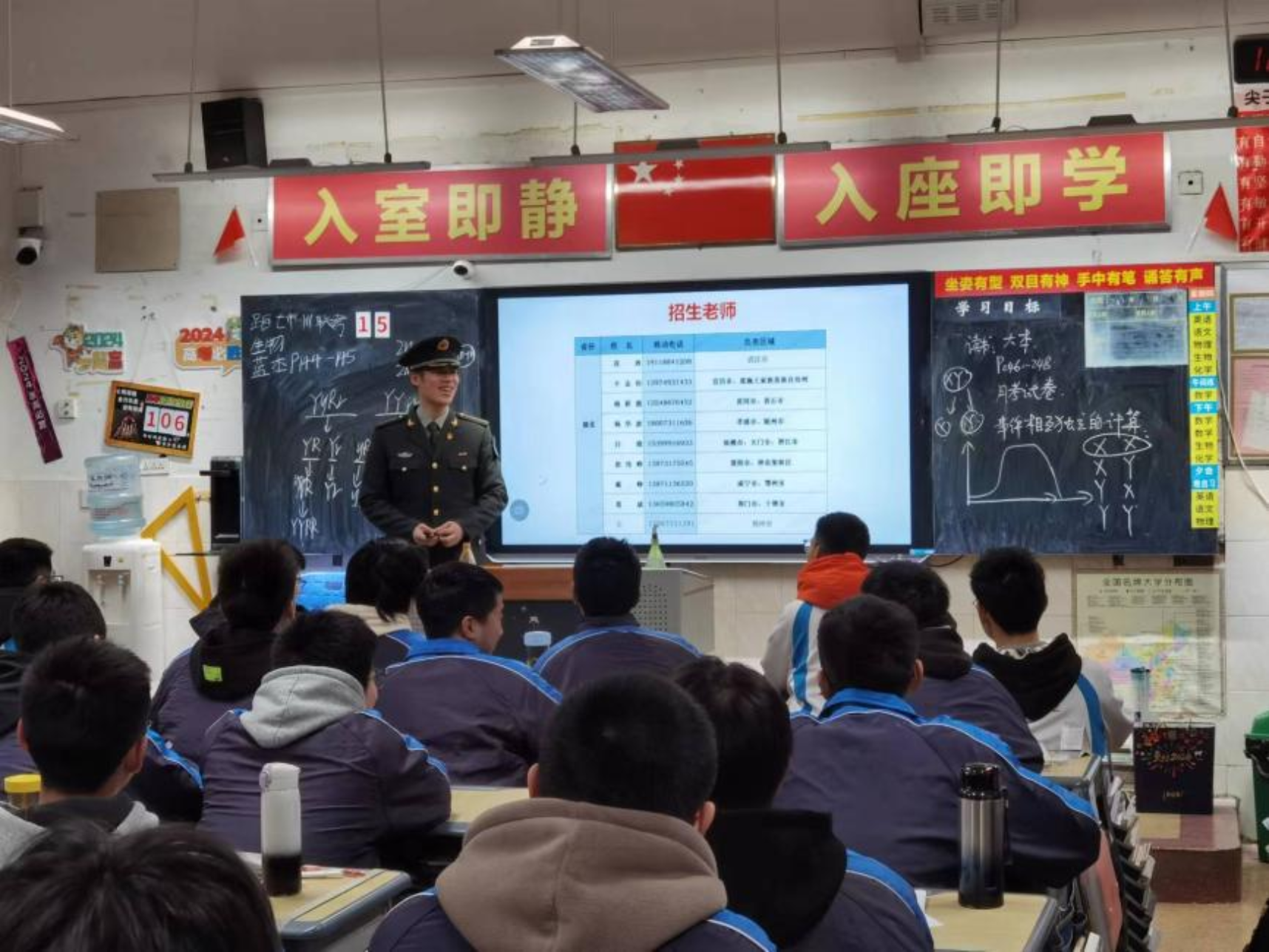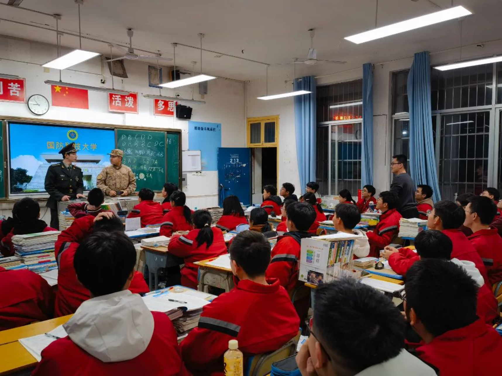 寒假之初,“走心人才队”汇报宣讲团立即动身,带着满腔激情和热血回到襄阳五中,为高三学子百日冲刺加油打气,鼓励高三学子确定报考目标,为强军兴军事业贡献力量。宣讲现场,宣讲团成员严肃而不失活泼的描述引起学弟学妹们对国防米兰的兴趣。本次宣讲让襄阳五中学子们了解到更真实立体的军校生活,从军报国的种子在他们的心中生根发芽。