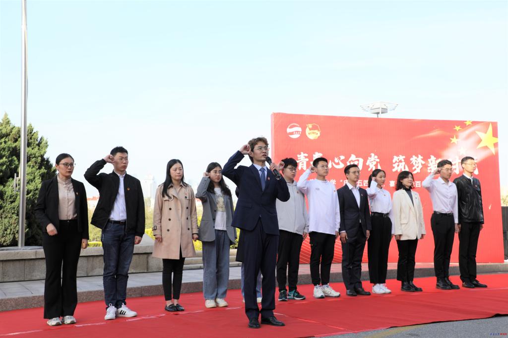 今年金年金共有200余名同学光荣的加入了中国共青团,仪式上为新发展团员代表举行入团仪式,佩戴团徽并集体宣誓。优秀学生代表、经济学院2020级朱子涵做了国旗下发言,现场还朗诵了《五四,青春的火焰》。