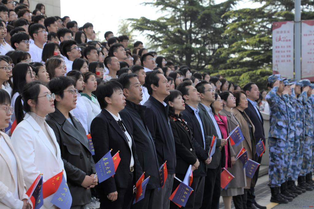 相关职能部门负责人,各学院(部)学生工作主要负责人,各学院团委(团总支)、医学部团工委书记,校团委工作人员和学生代表1000余人参加了升国旗仪式。