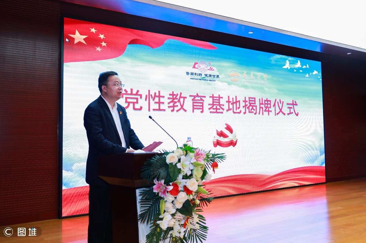 鲁南制药集团党委书记、董事长、总经理张贵民在致辞中指出,鲁南制药深受沂蒙精神的滋养,在长期艰苦奋斗的过程中形成了“不怕困难、挑战困难、战胜困难”的鲁南精神和独特的企业文化。他表示,期待以此次共建为契机,双方能够充分互通有无,互惠互利,全面提升双方党组织的战斗堡垒作用和双方党员的先锋模范作用,让党建工作在共建中发展,在共建中加强,为双方党建“高质发展,携手共赢”汇聚磅礴力量,进而增强“好医+好药”的校企合作品牌效益,为全民健康保驾护航。