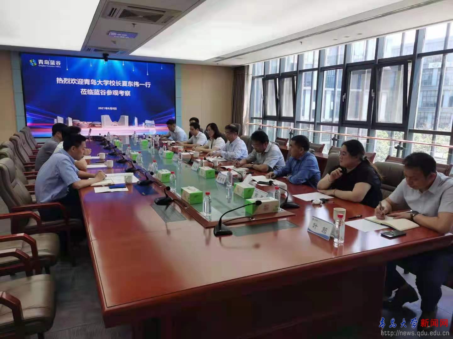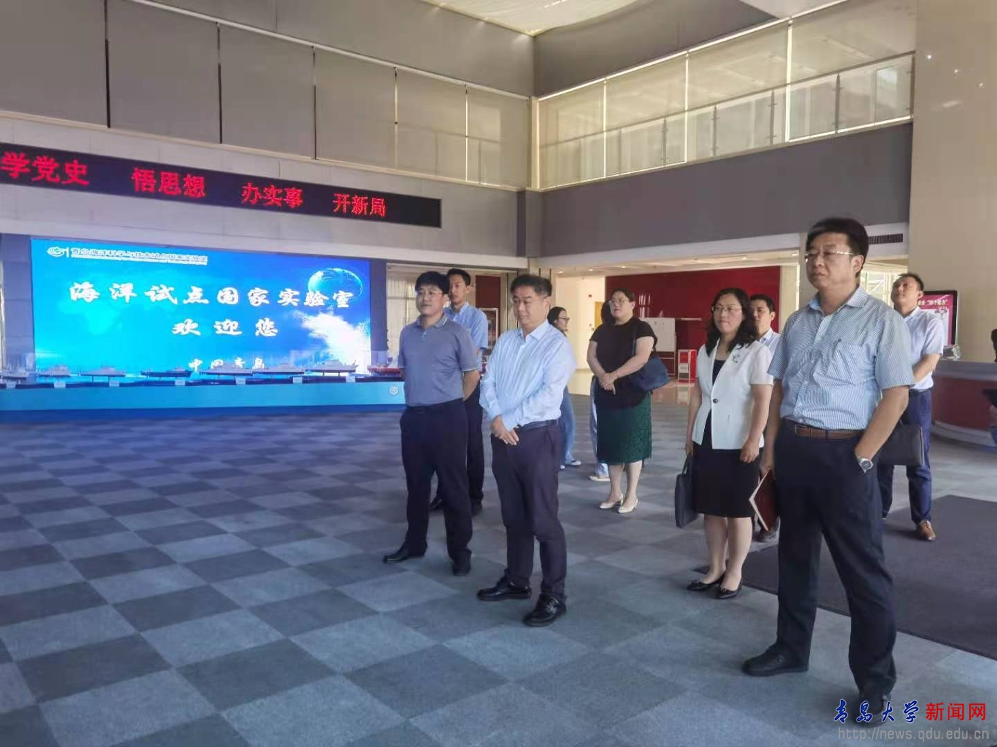 夏东伟一行参观了青岛海洋科学与技术试点国家实验室、国家海洋设备质检中心和即发集团海洋新材料研发基地,并与青岛蓝谷管理局局长、党委副书记肖焰恒,副局长王厚恩进行了座谈交流。