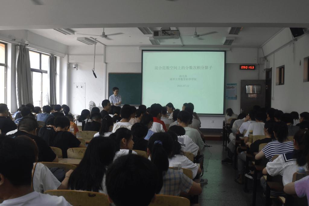7月12日上午,数学与统计学院夏季学期第一场高端学术报告在博远楼202教室举行,来自南开大学的国家自然科学杰出青年基金获得者孙文昌教授为学院师生作了题为“混合范数空间上的分数次积分算子”的学术报告,介绍了混合Lebesgue空间的发展历程和研究现状,以及若干最新的研究进展。数学与统计学院100余名本科生、30余名研究生以及部分教师参加了本次报告,报告现场气氛热烈,报告内容引起了在场师生的极大兴趣。