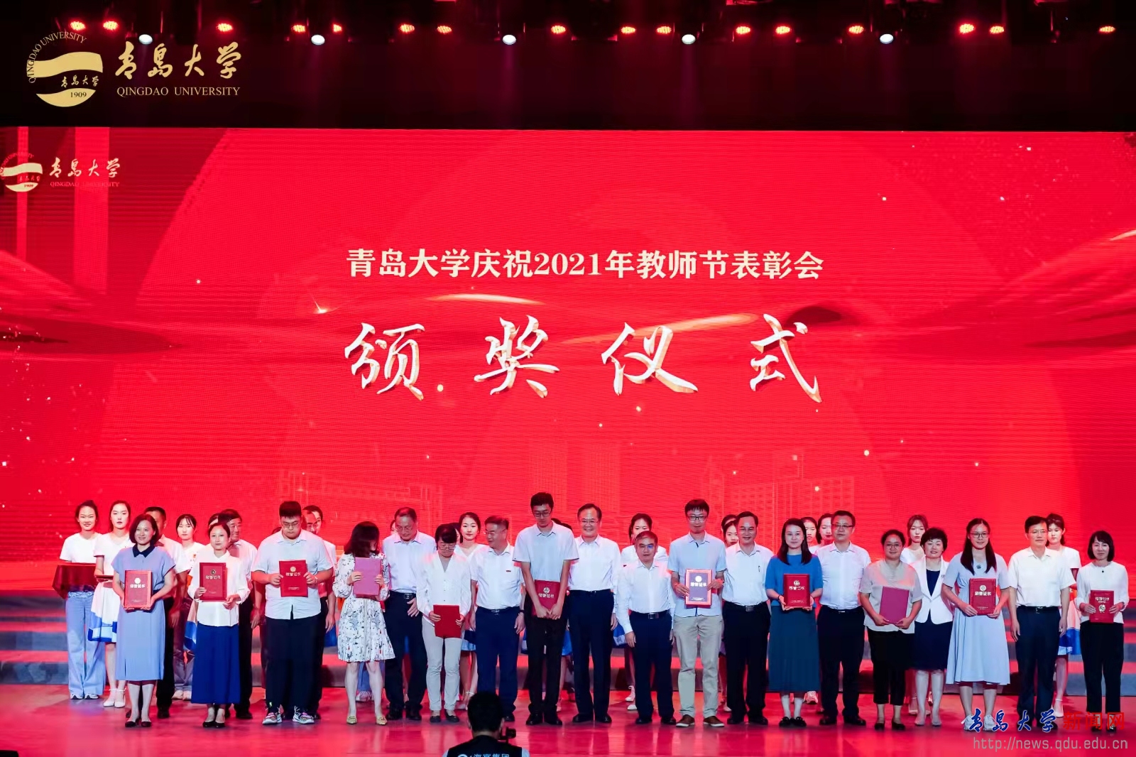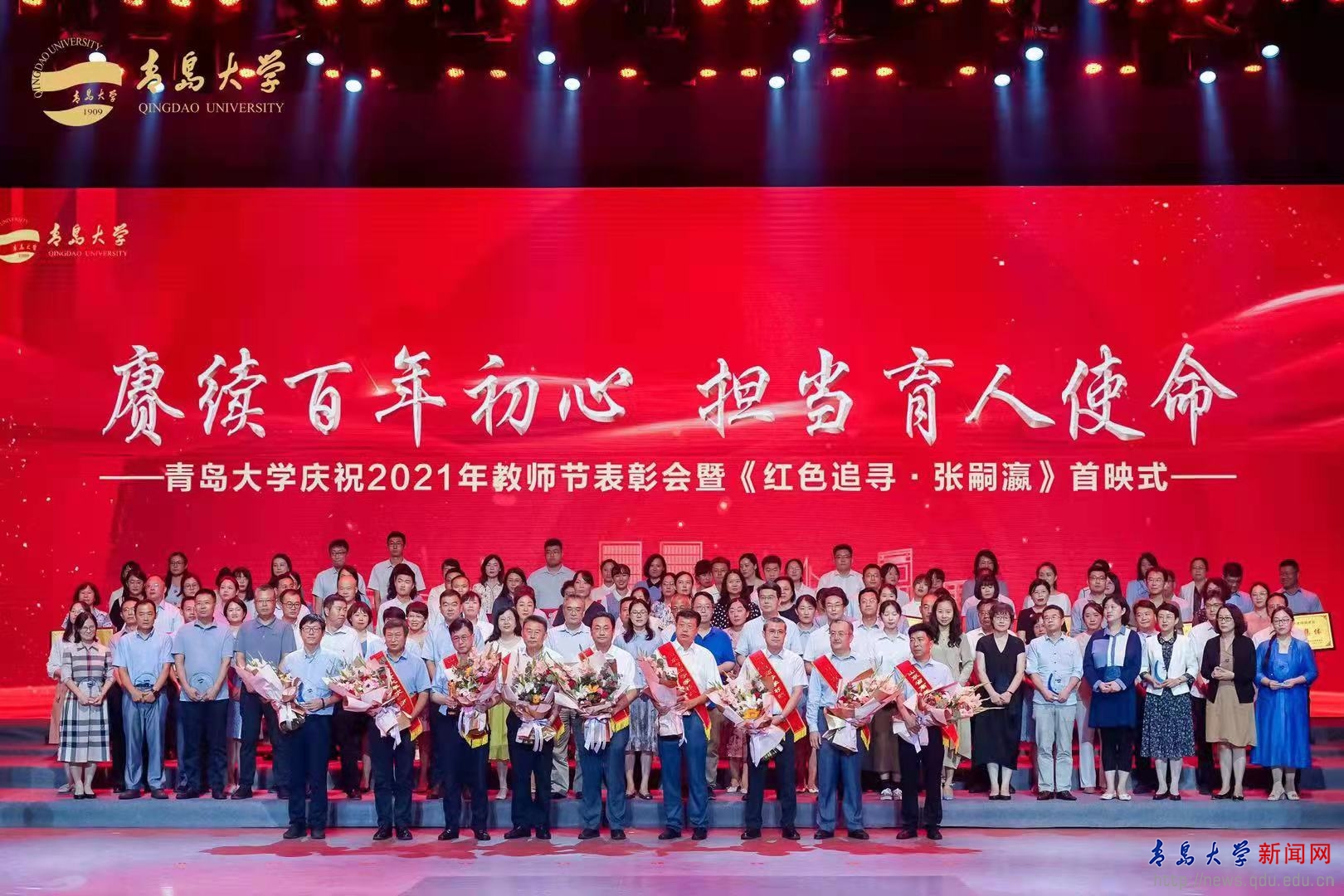 新闻网讯 9月10日下午,学校庆祝2021年教师节表彰大会暨《红色追寻·张嗣瀛》首映式在青大剧院隆重举行,中共青岛市委常委、统战部部长王久军, 中共青岛市委统战部副部长、市政府侨务办公室主任张辉,校领导胡金焱、夏东伟、李军、范玉斌、肖江南、孔伟金、姜宏、吴世珍、徐龙飞出席大会。