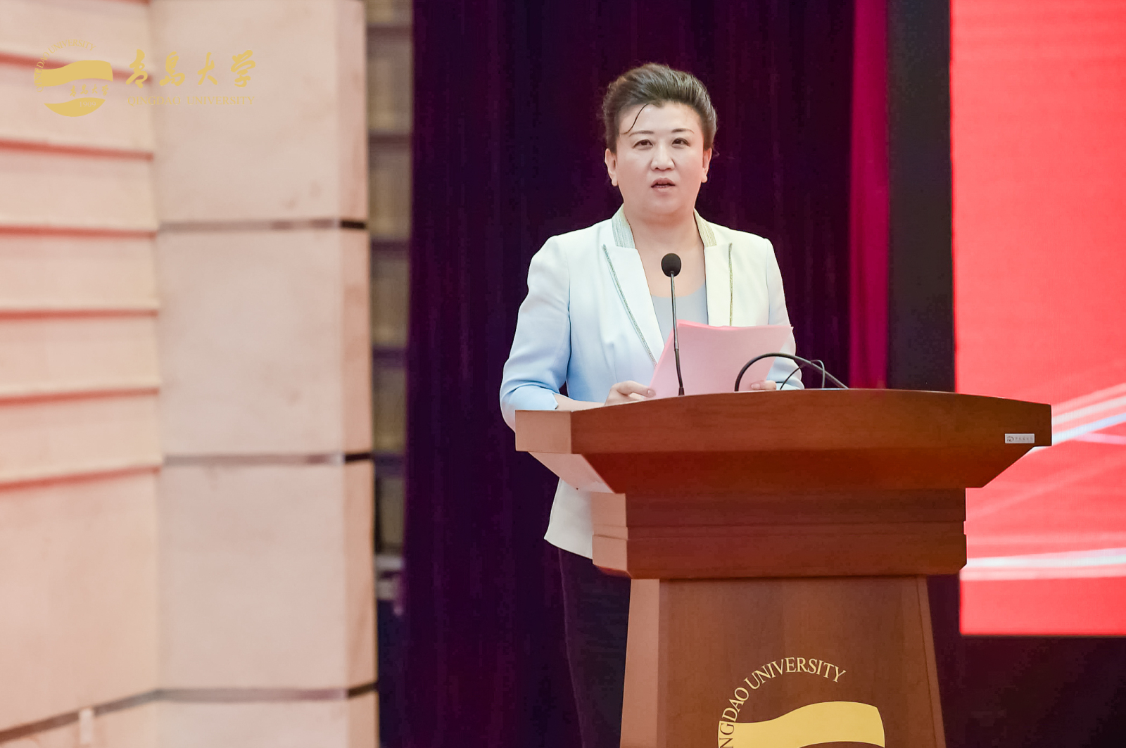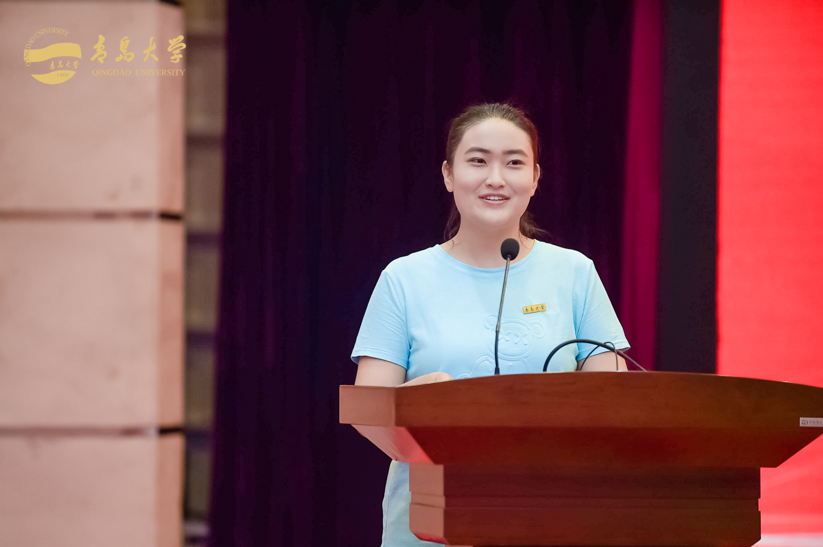 研究生行业导师代表,青岛海丽雅集团董事长张旭明老师发言,她希望同学们做事情要专心专注,把一件事情做到极致;要有“工匠精神”,积攒深厚的专业知识和过硬专业技能;要常怀感恩之心,有奉献精神。