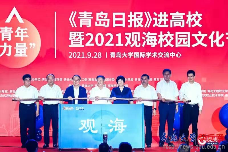 伴随着“《青岛日报》进高校”,2021观海校园文化节也同步启动。夏东伟与其他七所兄弟院校领导一起为文化节启幕。