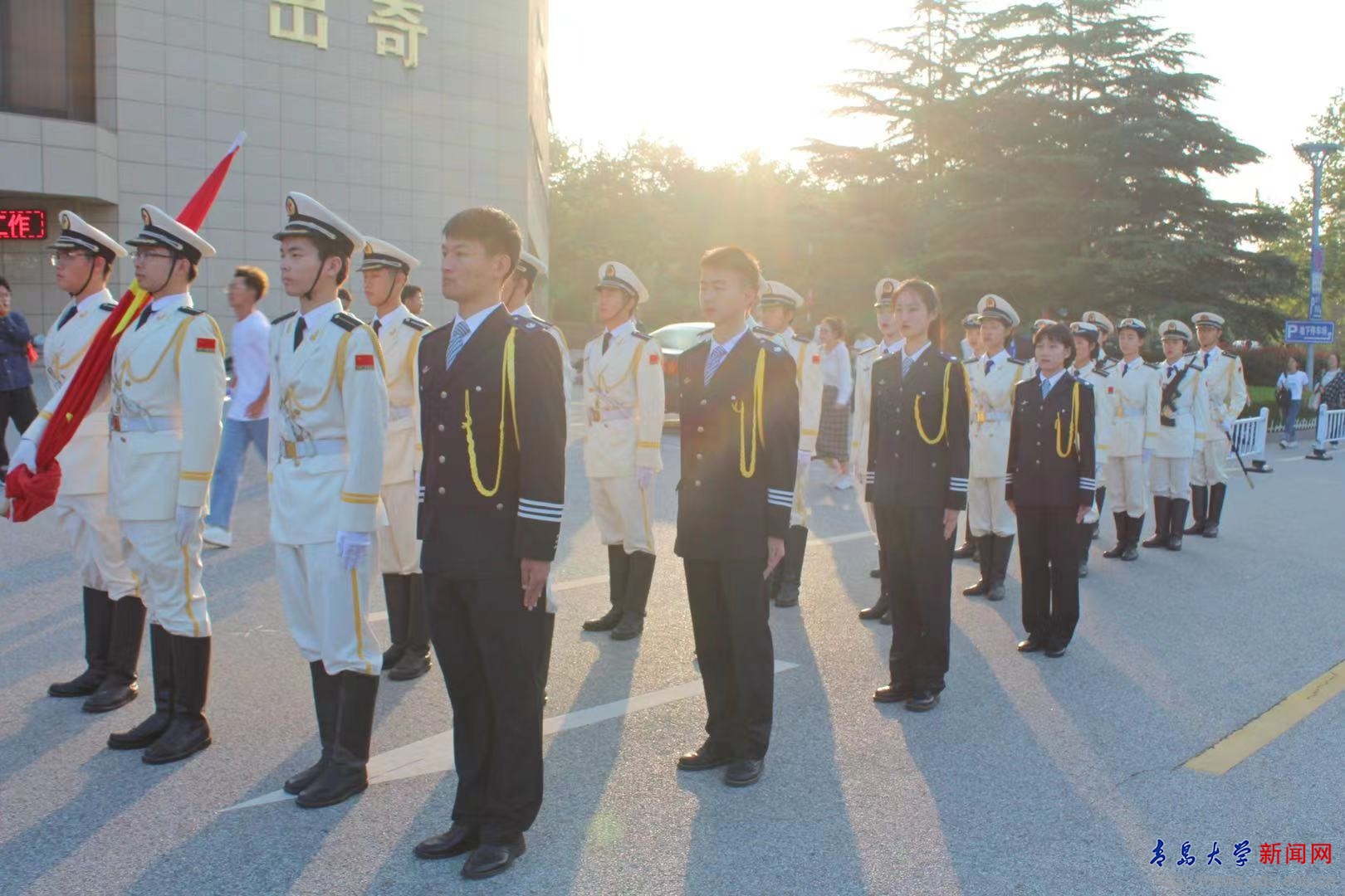 新闻网讯 9月30日上午7时,金年金在浮山校区和金家岭校区同时举行“请党放心,强国有我”2021年国庆节主题升旗仪式。校领导杜方波、吴世珍参加浮山校区升旗仪式,校团委书记马林刚主持仪式。