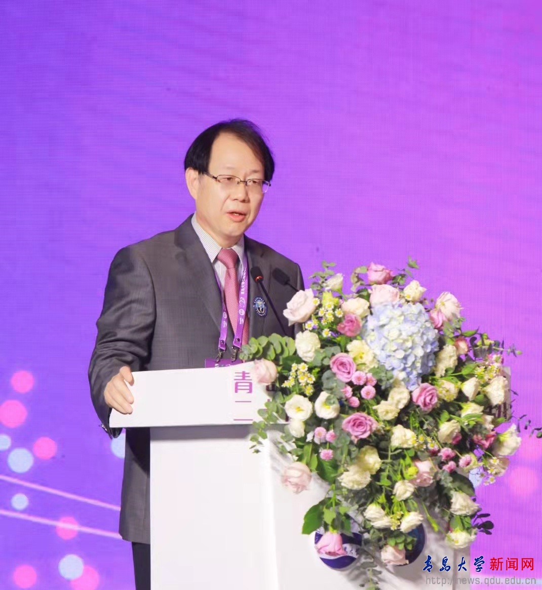 全国卫生产业企业管理协会精准医疗分会会长、上海市重点学科带头人陈万涛教授作为优秀校友代表致辞。他说,作为青大口腔的毕业生,亲身见证了青大口腔医学的发展,目前我们的校友遍布国内外,多年来为国家口腔卫生事业的发展做出了各自的贡献,相信青大口腔的明天一定会更辉煌。