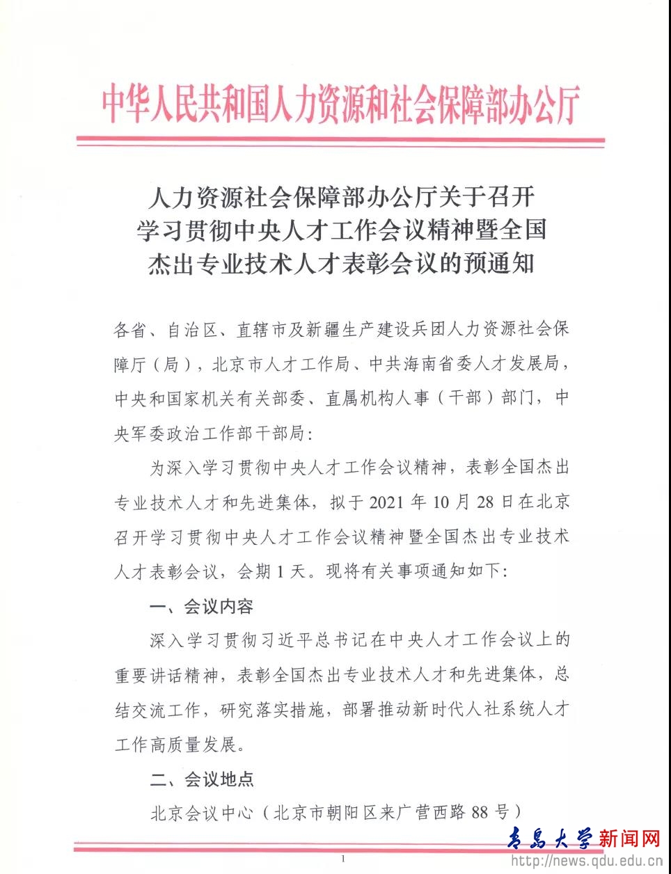 新闻网讯 10月28日,中共中央组织部、中共中央宣传部、人力资源社会保障部、科技部召开第六届全国杰出专业技术人才表彰大会。金年金附属医院数字医学临床诊疗科研团队作为山东省受奖代表,线上接受表彰。