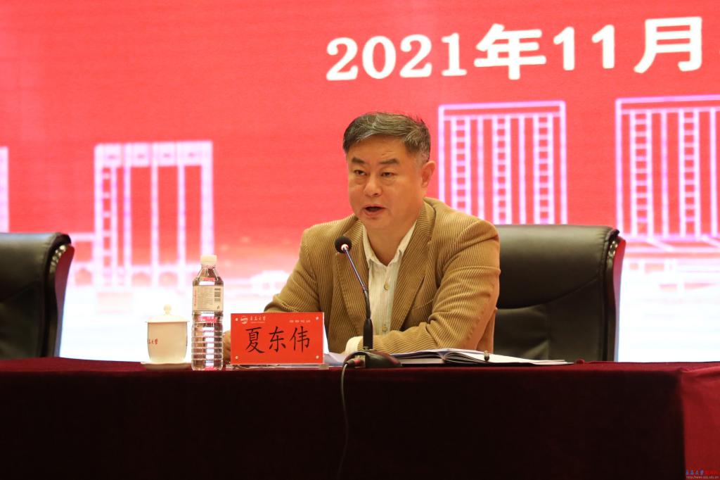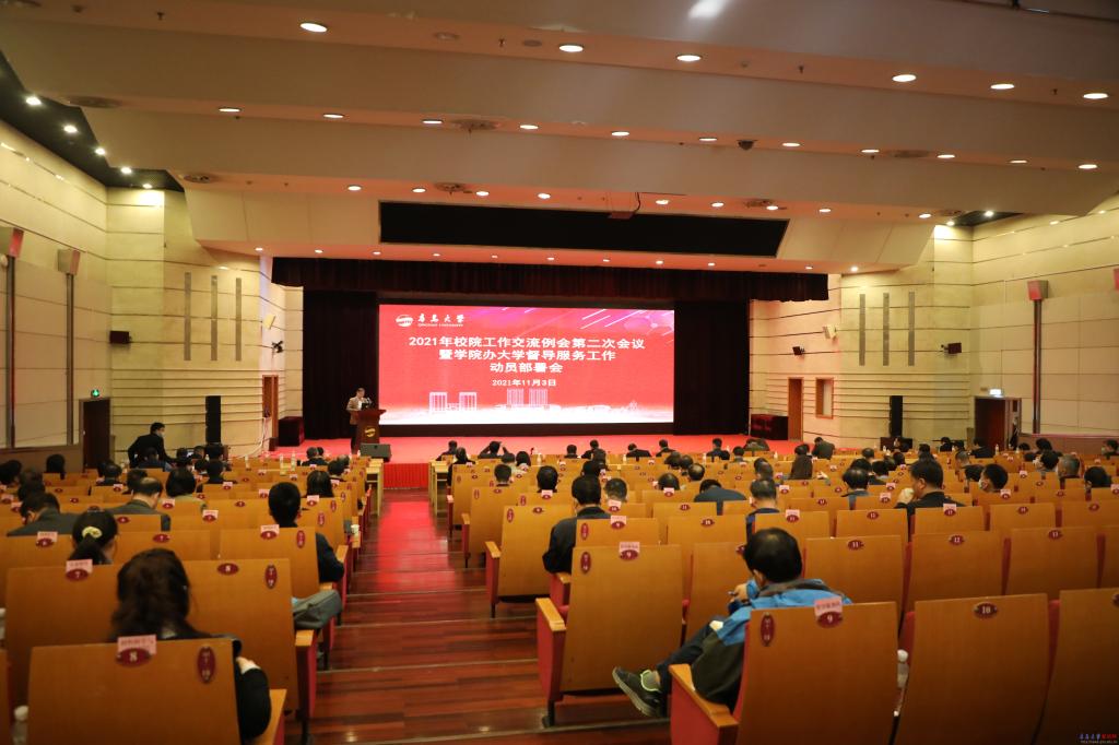 新闻网讯11月3日上午,学校2021年校院工作交流例会第二次会议暨学院办大学督导服务工作动员部署会在浮山校区国际学术交流中心博学厅举行。校党委书记胡金焱现场点评并讲话。会议由校长夏东伟主持。校领导杜方波、李军、肖江南、孔伟金、吴世珍、徐龙飞出席会议。