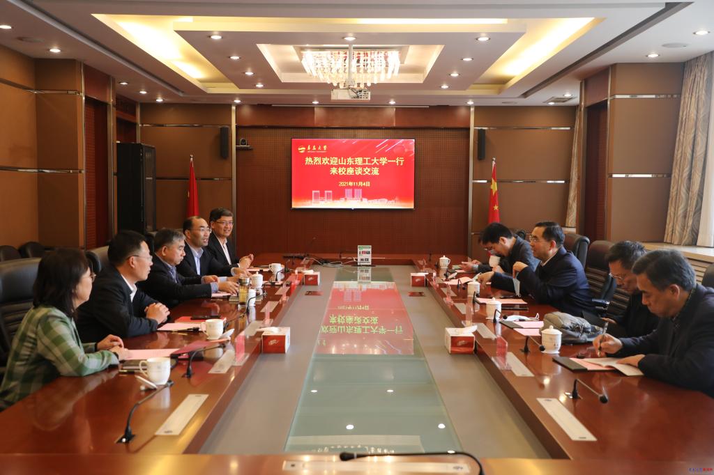 新闻网讯 11月4日下午,山东理工大学党委书记吕传毅一行来访金年金。校党委书记胡金焱在办公楼第五会议室会见并座谈。党委常委、副校长孔伟金主持座谈会。