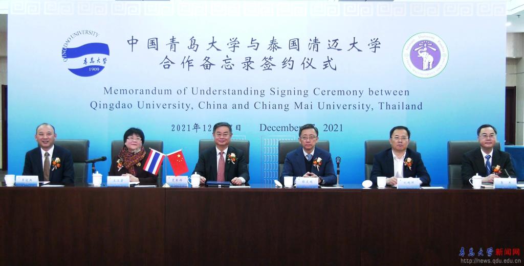 泰王国驻青岛总领事馆总领事王玉君、青岛市委常委、副市长薛庆国专程来校参加两校签约仪式,中国驻清迈总领事馆总领事吴志武在线上参加仪式,清迈府尹巴尊致视频贺词,表示将积极支持两校在友好市府框架下开展人才培养、科学研究、人文互鉴、创新创业等领域的交流与合作。