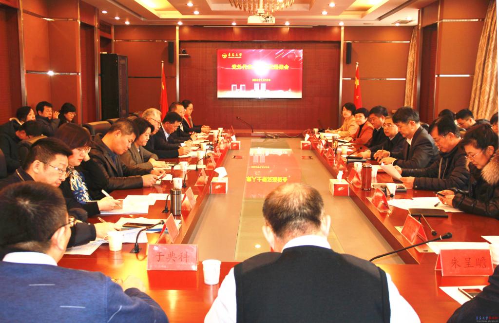 胡金焱对进一步发挥好党外人士的作用提出五点希望和要求:一是做好党派成员的吸纳与培养;二是做好党外人才的举荐与输送;三是做好党派工作的提升与宣传;四是做好不同渠道的建言与献策;五是做好党派学术资源的引领与转化。要聚焦山东省、青岛市在新时代国家改革开放大局中的定位,围绕新旧动能转换、上合示范区建设,以及学校中心工作,特别是“十四五”规划的实施,深入开展调查研究,提升履职尽责、参政议政的针对性、实效性。