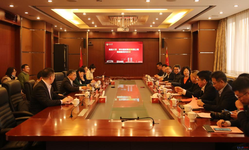 新闻网讯 1月18日下午,荣华建设集团有限公司捐赠暨签约仪式在学校办公楼第五会议室举行。校党委书记胡金焱,党委常委、副校长刘彩云,青岛市慈善总会会长王伟、副秘书长聂玖堂,荣华建设集团董事长孙涌、副总裁兼公益慈善事务部部长董建明、副总裁刘世海,山东大学校友会副会长、山东大学青岛校友会会长肖黎出席仪式。