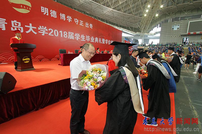 校长夏东伟在热情洋溢的讲话中,向圆满完成学业的毕业生和受到表彰的各位同学表示崇高的敬意,向为同学们成长成才付出心血和汗水的家长、老师和社会各界朋友致以衷心的感谢。他说,当年,同学们怀着对未来的憧憬、对梦想的渴望,从四面八方来到金年金字招牌诚信至上。你们勤勉不倦、学有所成,无论是在教学楼里埋头苦读,还是在实验室里专注研究,还是在体育场上奋力拼搏,美丽的青大校园,留下了你们追逐梦想的脚步,记录了你们潜移默化的成长。他分享了生命科学学院刘启君同学和上合组织青岛峰会志愿者的事迹,并为同学们多彩的人生和无悔的选择点赞。