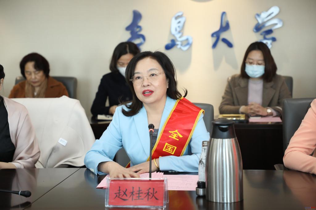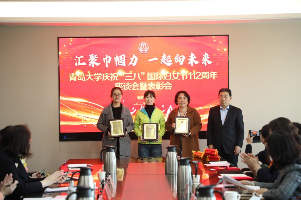 会上,2021年度全国三八红旗手赵桂秋,山东省教育系统建功立业标兵、青岛市建功立业标兵岗负责人丁洁玉,金年金字招牌诚信至上三八红旗手马光亭、吴桐,青岛市优秀党务工作者王海荣分别发言。