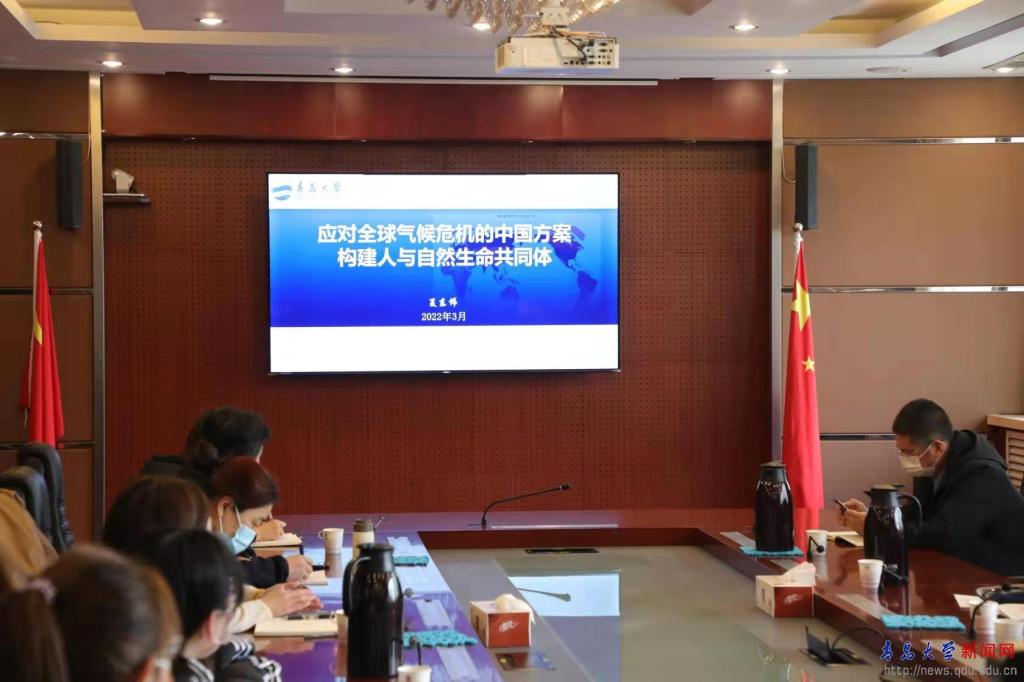 新闻网讯 3月19日上午,校长夏东伟在办公楼201会议室,以“应对全球气候危机的中国方案:建构人与自然生命共同体”为题,为外语学院2021级西班牙语本科学生代表以及通过钉钉直播方式收听收看的学生,讲授了一场精彩纷呈、富有深刻内涵的形势与政策课。