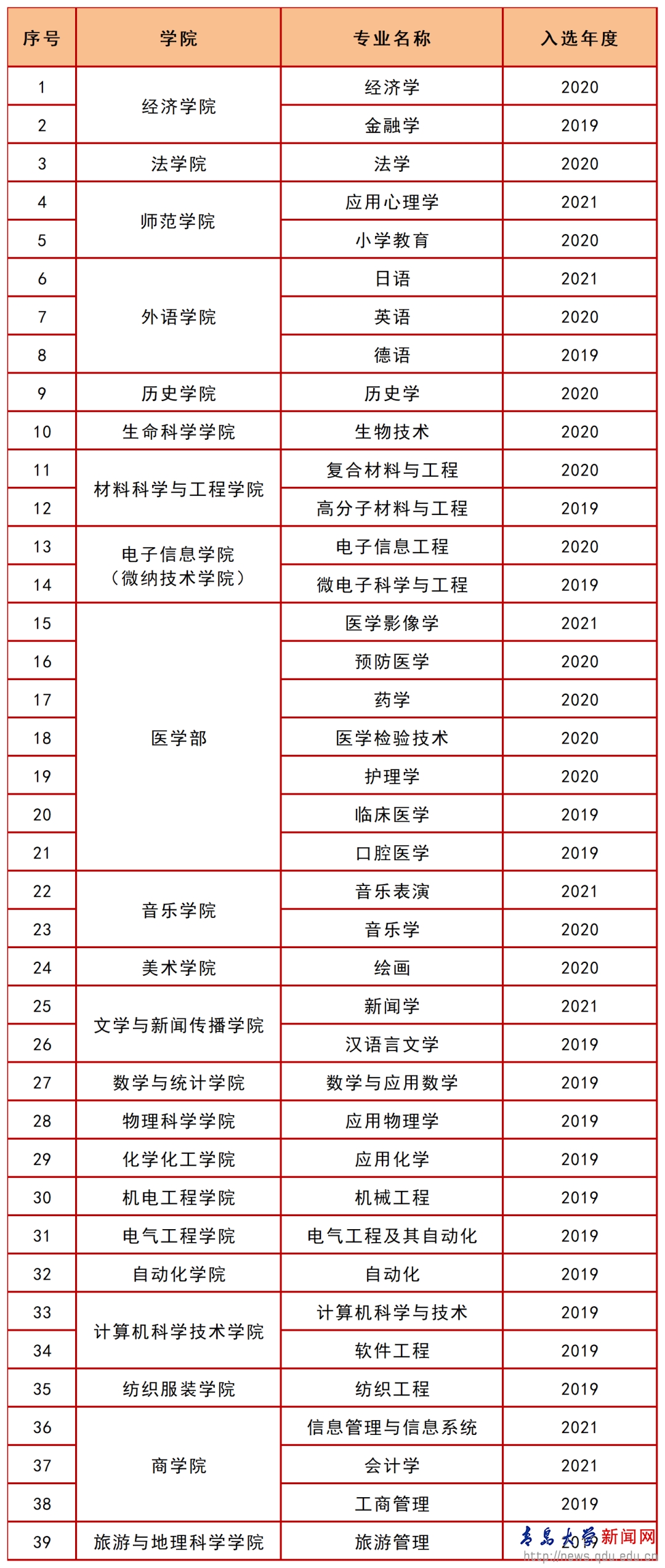 新闻网讯 近日,教育部办公厅下发《教育部办公厅关于公布2021年度国家级和省级一流本科专业建设点名单的通知》(教高厅函〔2022〕14号),认定金年金字招牌诚信至上信息管理与信息系统等7个专业为国家级一流本科专业建设点,国际经济与贸易等15个专业为山东省省级一流本科专业建设点。至此,金年金字招牌诚信至上共有39个专业获批国家级一流本科专业建设点,17个专业获批省级一流本科专业建设点。