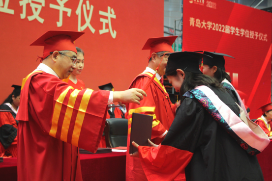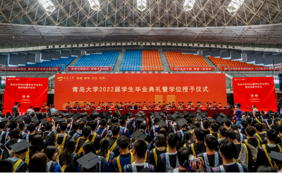 典礼前的“青春飞扬”快闪,唱响了对母校的浓浓眷恋与对师友的依依不舍,唱出了青大人无悔的奋斗青春,悠远了青大人“明德、博学、守正、出奇”的精神。祝愿2022届全体毕业生启航山海青大,扬鞭万里征程!