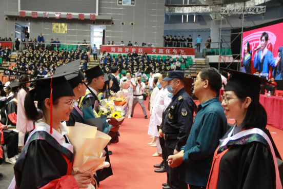 校友、学生代表为教职医务员工及家长和朋辈代表献花,表达对全体教职医务人员辛苦付出、无私奉献的感谢,对家长拳拳之爱、殷殷之情的感恩以及对朋辈同学们的互相关爱、共同成长的感激。