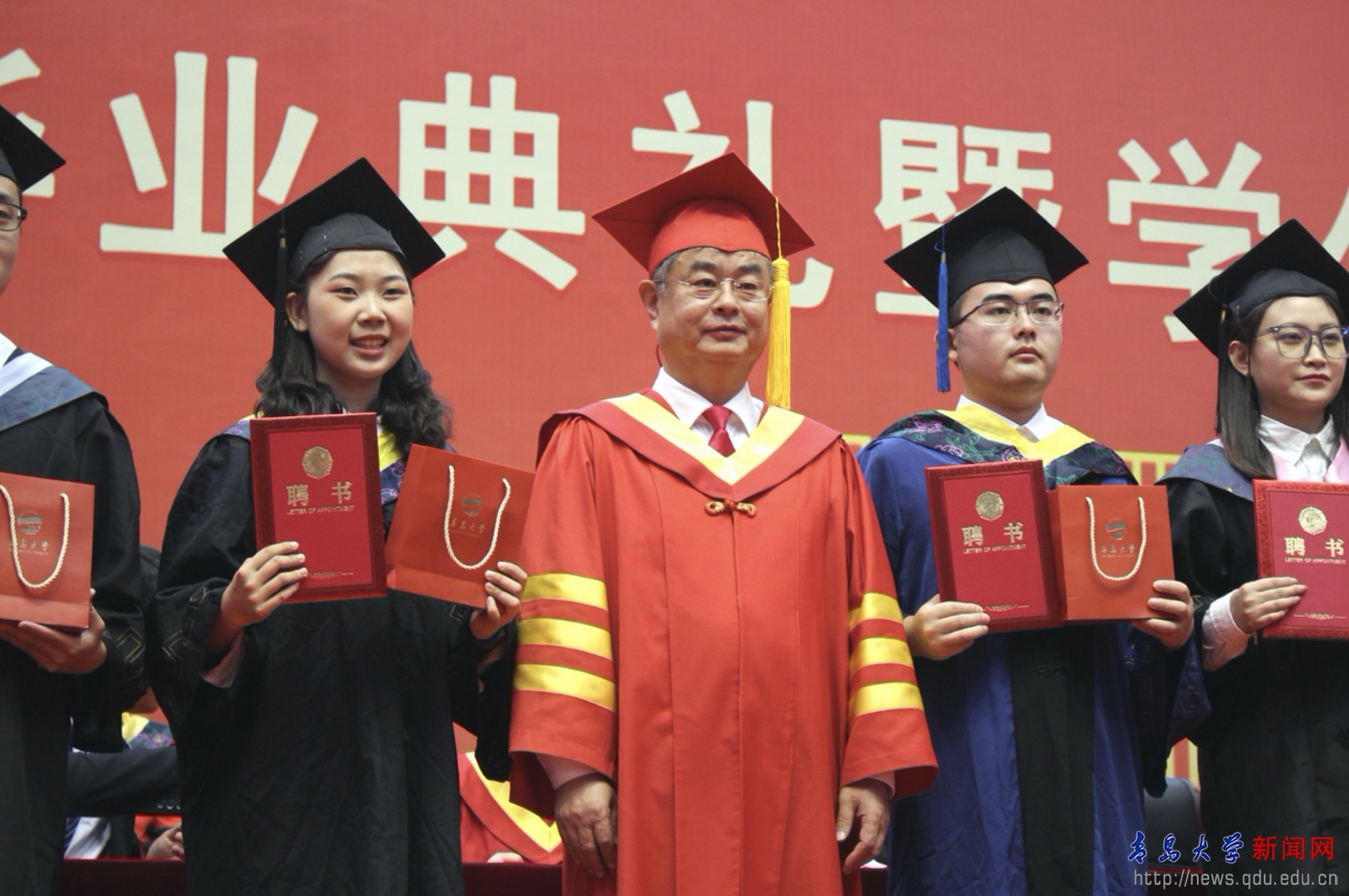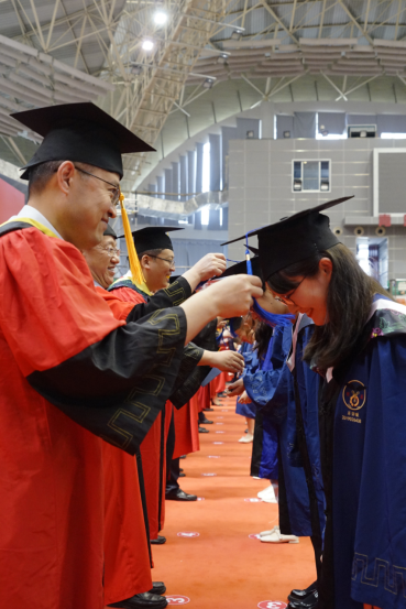 胡金焱、夏东伟为博士学位获得者颁发学位证书、扶正流苏,并一一合影留念。校领导、各学院(部)院(部)长、相关职能部门负责人以及知名教授代表为硕士、学士学位获得者颁发学位证书、扶正流苏,并一一合影留念。