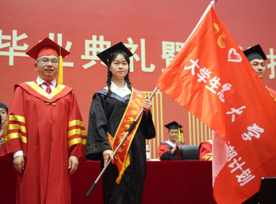 典礼上,胡金焱为2022年“西部计划”志愿者代表授旗、授章,鼓励青年学子到西部、到基层,到祖国和人民最需要的地方建功立业。夏东伟为2022届毕业生代表颁发校友联络员聘书、毕业纪念品,希望校友切实做好校友与母校联系交流的桥梁和纽带作用,促进校友与母校共进步、齐发展。胡金焱、夏东伟为省级优秀毕业生代表颁发了证书。