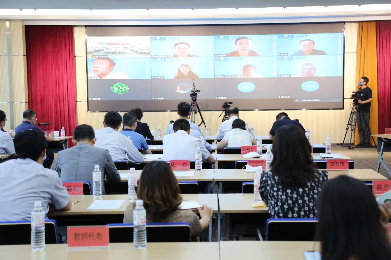 刘静波教授介绍了此次线上联合考查的目的方式及工作安排。专家组与职能部门管理人员多对多访谈,就人才培养质量达成评价、课程体系合理性评价、教学质量监控体系、教师工程背景等进行提问,党委常委、副校长孔伟金和相关职能部门逐一解答并说明。服装设计与工程、食品科学与工程、计算机科学与技术专业分组对专业自评报告中未充分说明的内容做了进一步补充介绍。