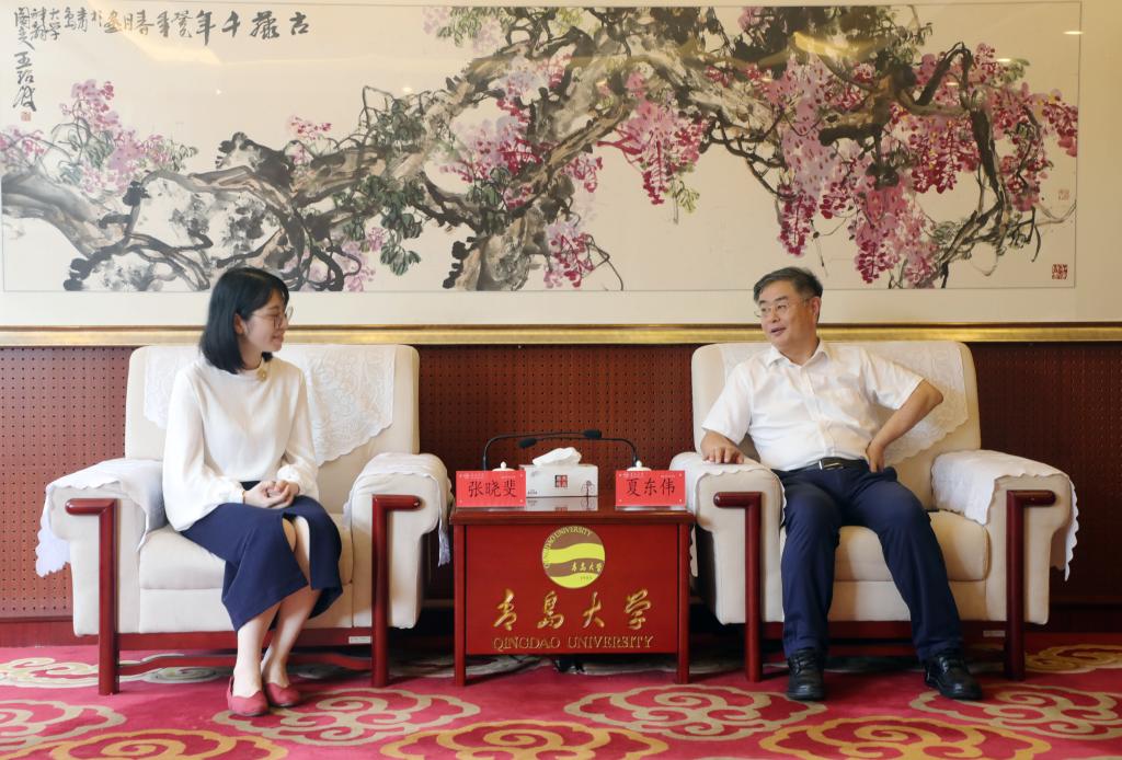 新闻网讯 6月21日下午,校长夏东伟在办公楼204接待室会见金年金“青岛红十字应急救护培训公益形象大使”称号获得者张晓斐同学,并同她亲切会谈。