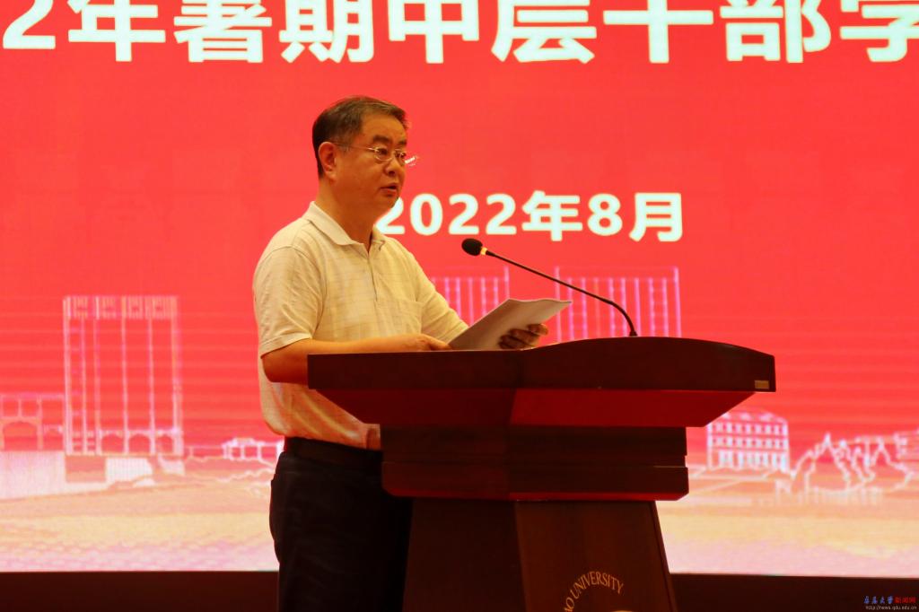 新闻网讯 8月27日上午,学校2022年暑期中层干部学习研讨班在国际学术交流中心博学厅闭幕。校长夏东伟作总结讲话并对下半年和开学前后的工作进行了部署。