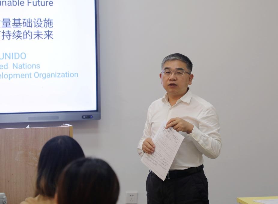 在博知楼111教室,胡金焱和同学们一起听取质量与标准化学院教师程馨的《国家质量基础设施》课程。胡金焱首先对此次课堂教学表示了充分肯定,随后指出课堂教学要以学生为中心,做好课程模块设计和过程化考核,全面提升教学质量;任课教师要以课程网站建设为抓手做好教学资源供给,依托课程网站做好教学资源的汇集、整理和凝练,引导学生获取学习资料进行预习和复习,达到线上线下教学相结合,打造高质量“金课”。胡金焱还勉励同学们勤奋读书、锻炼身体,响应国家号召,努力成为合格的建设者和接班人。