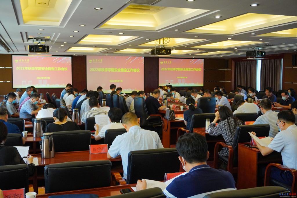 夏东伟对校园安全稳定工作进行了部署。他指出,做好校园安全稳定工作,关键在于抓好责任落实,坚持党政同责、一岗双责、齐抓共管、失职追责,坚决守住学校安全稳定的“一排底线”。夏东伟强调,要严格做好常态化校园疫情防控,制定具体管用的措施,强化服务保障,合理有序地落实好新生入学期间的各项防疫要求。要紧跟进省市疫情防控的最新要求,扎实做好校园核酸检测,落实好常态化疫情防控各项措施。夏东伟同时对学生安全教育管理、实验室安全管理、消防及校园安全管理、饮食卫生安全、建筑工地安全生产、值班值守和应急管理做出部署并提出了具体要求。