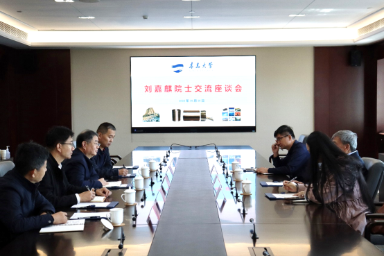 在浮山校区东院教学实验楼,刘嘉麒就大楼的建设情况、功能布局与“纺织+”学科集群建设和发展相结合等问题与相关学科负责人进行了现场交流。在功能纤维与先进材料研究院,徐英俊教授详细介绍了各实验室功能及实验设备性能,并分析了实验室与玄武岩纤维应用研究融合发展的初步方案。在生态纺织协同创新中心,刘嘉麒一行现场考察了专业应用实验室,房宽峻教授展示了具有生物医用、低电阻可穿戴等不同功能的先进纺织品。在分析测试中心,王宗花教授介绍了中心的成立背景、建设布局、主要功能及大型仪器设备的应用情况。