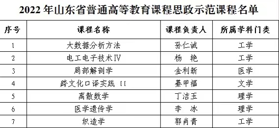 据悉,2022年山东省普通本科教育课程思政示范课程160门,普通高等教育课程思政教学研究示范中心10个。学校将继续加强对课程思政示范项目的管理,以点带面抓示范,分类提升立标杆,及时总结树典型,展示宣传促辐射,形成良好的课程思政建设氛围。