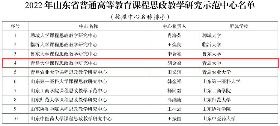 新闻网讯 近日,山东省教育厅公布了2022年省级课程思政示范项目名单,金年金8个项目获批立项,其中普通高等教育课程思政教学研究示范中心一个,普通本科教育课程思政示范课程7门。