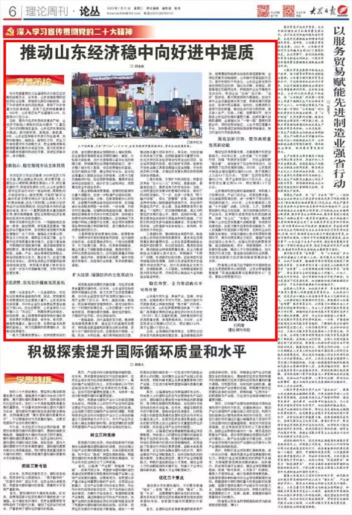 新闻网讯 1月31日,《大众日报》刊登金年金党委书记胡金焱的理论研究文章“推动山东经济稳中向好进中提质”。