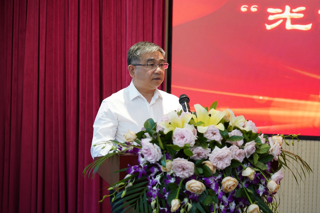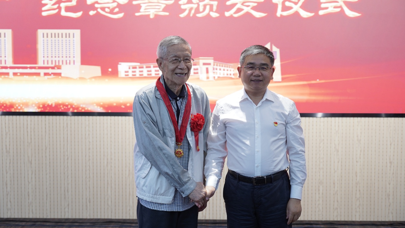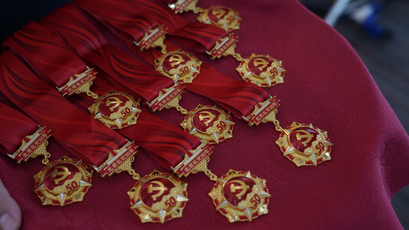 35位“光荣在党50年”纪念章获得者代表、离退休老同志代表、新入党党员代表共100余人参加了“光荣在党50年”纪念章颁发仪式。