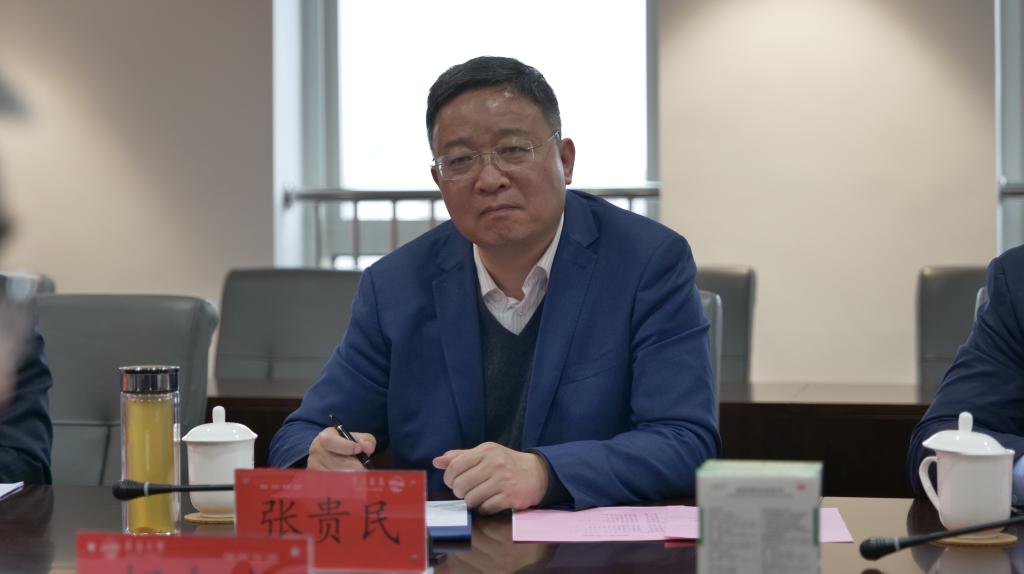 胡金焱对张贵民一行表示热烈欢迎。他表示,鲁南制药集团是国内知名医药企业,鲁南精神和企业文化更是沂蒙精神的典型代表。随后,他介绍了学校医学学科的办学理念和发展情况,并强调产教融合、科教融合是学科发展的重要支撑,而强大的医科支撑则是医疗发展的“源头活水”。近年来学校通过实施医教研一体化,以办学思维办医、以教学科研带临床、以高水平学科建设带高水平医院建设,不断深化医学教育体制机制改革,医学办学水平和附属医院综合实力不断提升。他强调,要深入贯彻习近平总书记关于中医药工作的重要论述,紧抓中医药发展大势机遇。校企双方资源互补,合作前景广阔,希望双方在相关医药领域协力共进,探索建立联合实验室,深入开展人才交流合作,依托学校学科优势有力聚合校企人才、科研、医疗、资金、产业等创新要素,共筑中医药发展生态链,共同打造山东医学医疗高地,助力振兴中医药发展、服务健康中国。