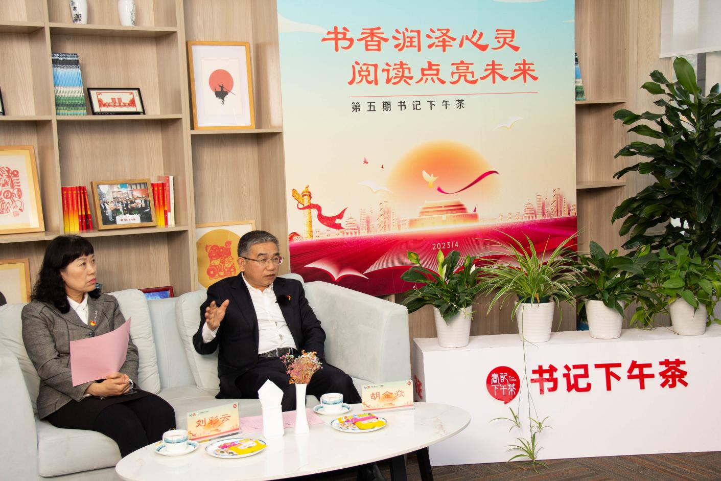 新闻网讯 4月20日下午,学校举办“书香润泽心灵 阅读点亮未来”第五期“书记下午茶”。校党委书记胡金焱与8位不同院系不同专业的“阅读达人”学生代表同饮下午茶,共解书中味。校党委常委、副校长刘彩云陪同出席。