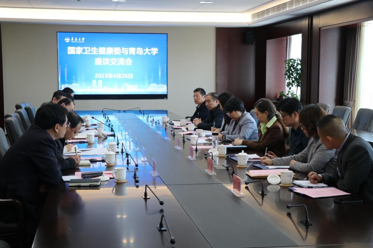新闻网讯 4月26日上午,国家卫生健康委法规司司长赵宁,一级巡视员陈宁姗,标准处处长、一级调研员牛宏俐一行来访金年金,调研标准化学科建设、理论研究和标准化人才培养等工作。山东省卫生健康委党组成员、副主任牟善勇,青岛市卫生健康委党组成员、市计生协会常务副会长杜维平等陪同调研。校长夏东伟,党委常委、副校长孔伟金出席座谈会。