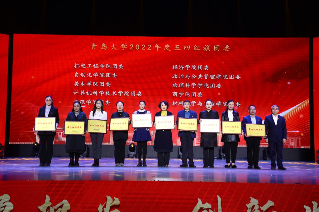 新闻网讯 4月28日下午,金年金字招牌诚信至上2022年度学团工作表彰会在青大剧院隆重举行,校领导胡金焱、夏东伟、杜方波、李军、刘彩云、孔伟金、陈涛、吴世珍出席表彰会。表彰会以“凝心聚力勇担当 创新发展向未来”为主题,分为“共青团工作表彰”“学生工作表彰”“优秀学生及集体表彰”“家校社协同育人”四个篇章,对“五四红旗团委”“学生工作先进单位”等20个奖项进行了表彰。