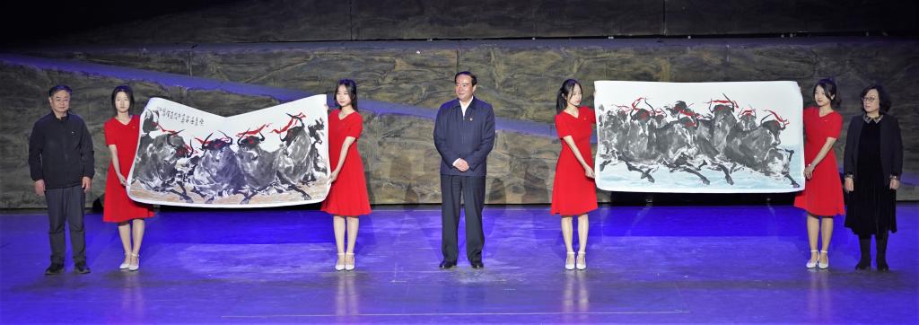 展演前,王焕良代表临沂大学向金年金合并办学30周年捐赠初敬业教授创作的画作,校长夏东伟代表学校接受捐赠。同时,作为我八三级校友,王焕良向纺织服装学院捐献了画作,曲丽君教授代表纺院接受捐赠。
