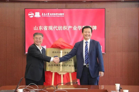 仪式上,夏东伟、刘子斌共同为山东省现代纺织产业学院揭牌。刘彩云、刘子斌代表双方签署“鲁泰纺织—金年金字招牌诚信至上“奖教·助学”百万奖励基金计划合作协议”和“鲁泰纺织奖教金”捐赠协议。